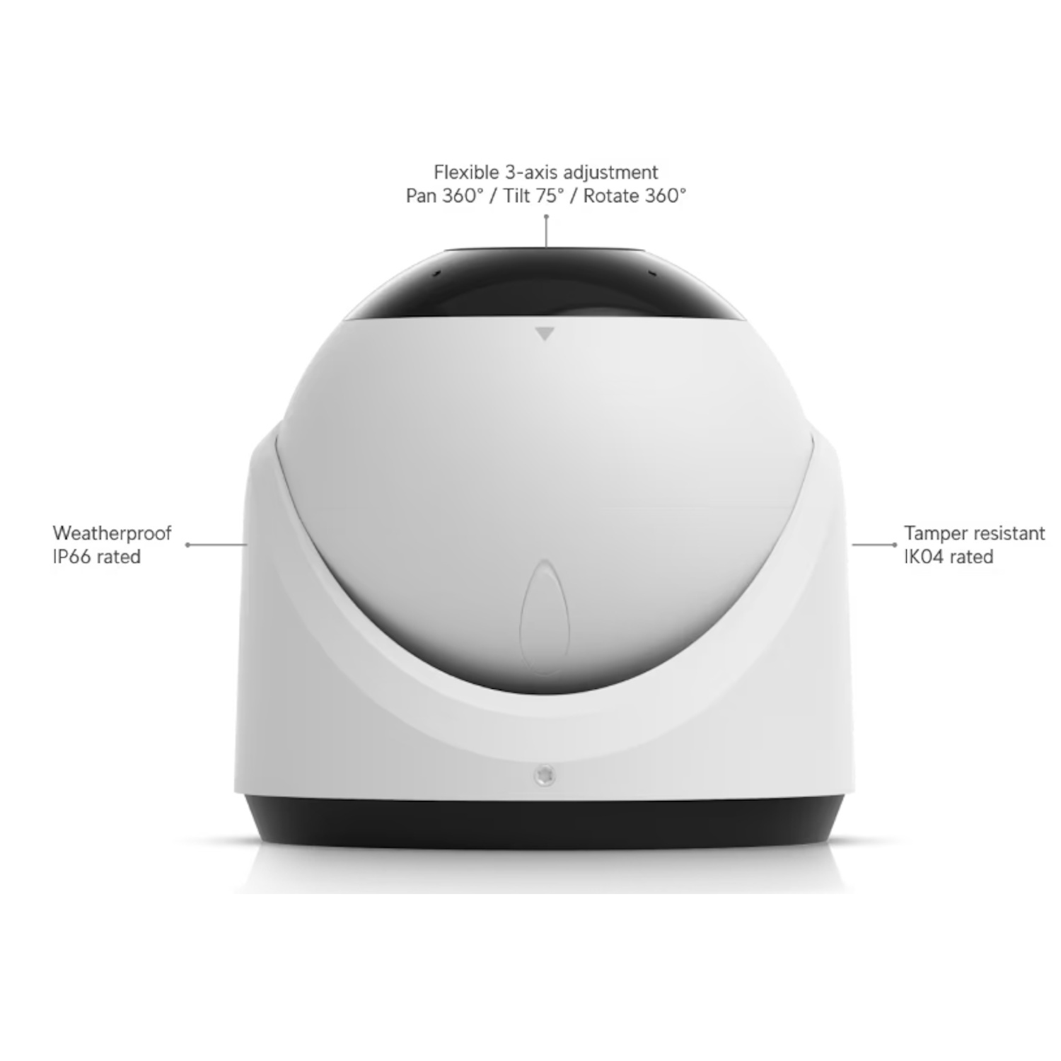 Ubiquiti UVC G6 Turret sujungia aukštą vaizdo kokybę, profesionalų naktinį matymą ir dirbtinio intelekto analizę vienoje kameroje. Power over Ethernet palengvina montavimą, o IP66 apsauga ir integruotas mikrofonas leidžia ją patikimai naudoti tiek viduje, tiek lauke.