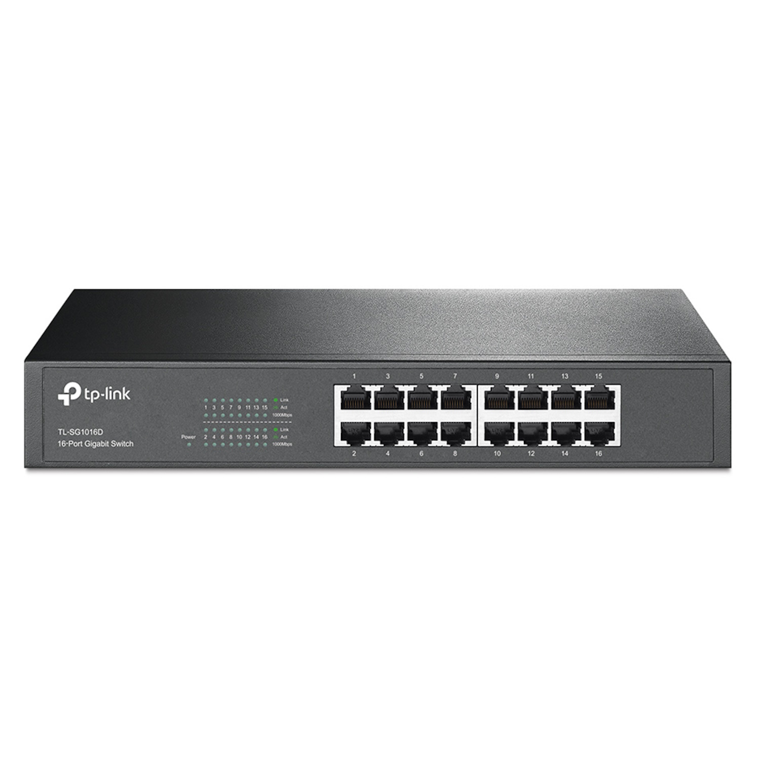 TP-Link TL-SG1016D yra šešiolikos prievadų Gigabit Ethernet nevaldomas tinklo komutatorius, skirtas greitam ir stabiliam laidinio tinklo išplėtimui be jokios konfigūracijos. Jis tinka namams, mažiems biurams ir verslo aplinkai, kur reikia prijungti daug laidinių įrenginių.