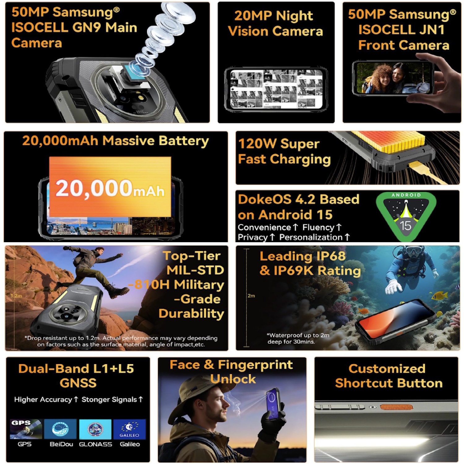 Blackview XPLORE 2 yra itin atsparus išmanusis telefonas su dideliu 6,73″ AMOLED ekranu, 120 Hz atnaujinimo dažniu ir 20 000 mAh baterija, skirtas intensyviam naudojimui sudėtingomis sąlygomis. Galinga konfigūracija su 12 GB RAM ir 256 GB vidinės atminties užtikrina stabilų veikimą darbui, kelionėms ir aktyviam kasdieniam naudojimui. Šis įrenginys skirtas tiems, kuriems reikalinga maksimali autonomija ir patikimumas.