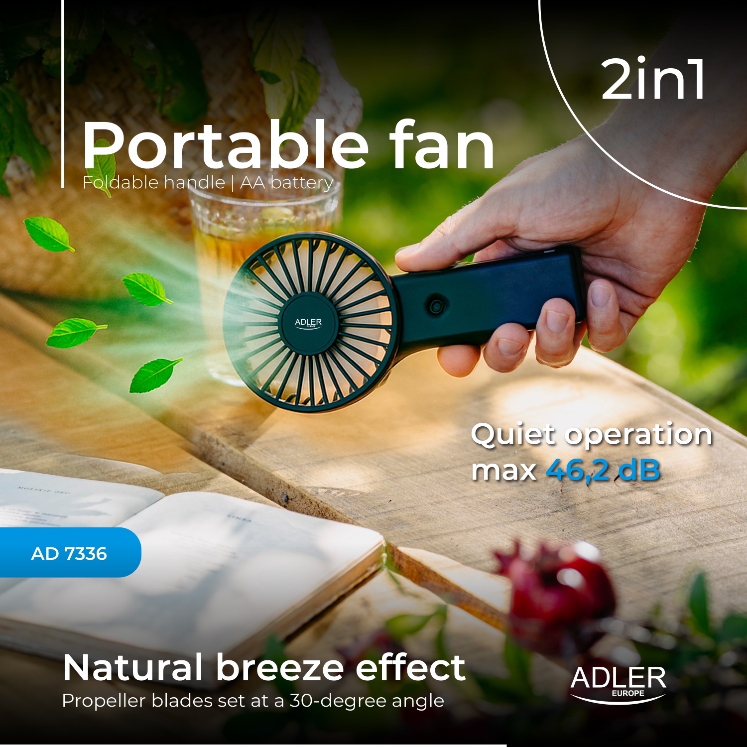 Adler Foldable Mini Fan AD 7336 yra kompaktiškas ir nešiojamas stalo ventiliatorius, skirtas paprastai ir praktiškai oro cirkuliacijai patalpose ar kelionėse. Sulankstoma rankena ir lengva konstrukcija leidžia patogiai naudoti ant stalo, lentynos ar nešiotis krepšyje, idealiai tinka greitam atvėsinimui karštomis dienomis.