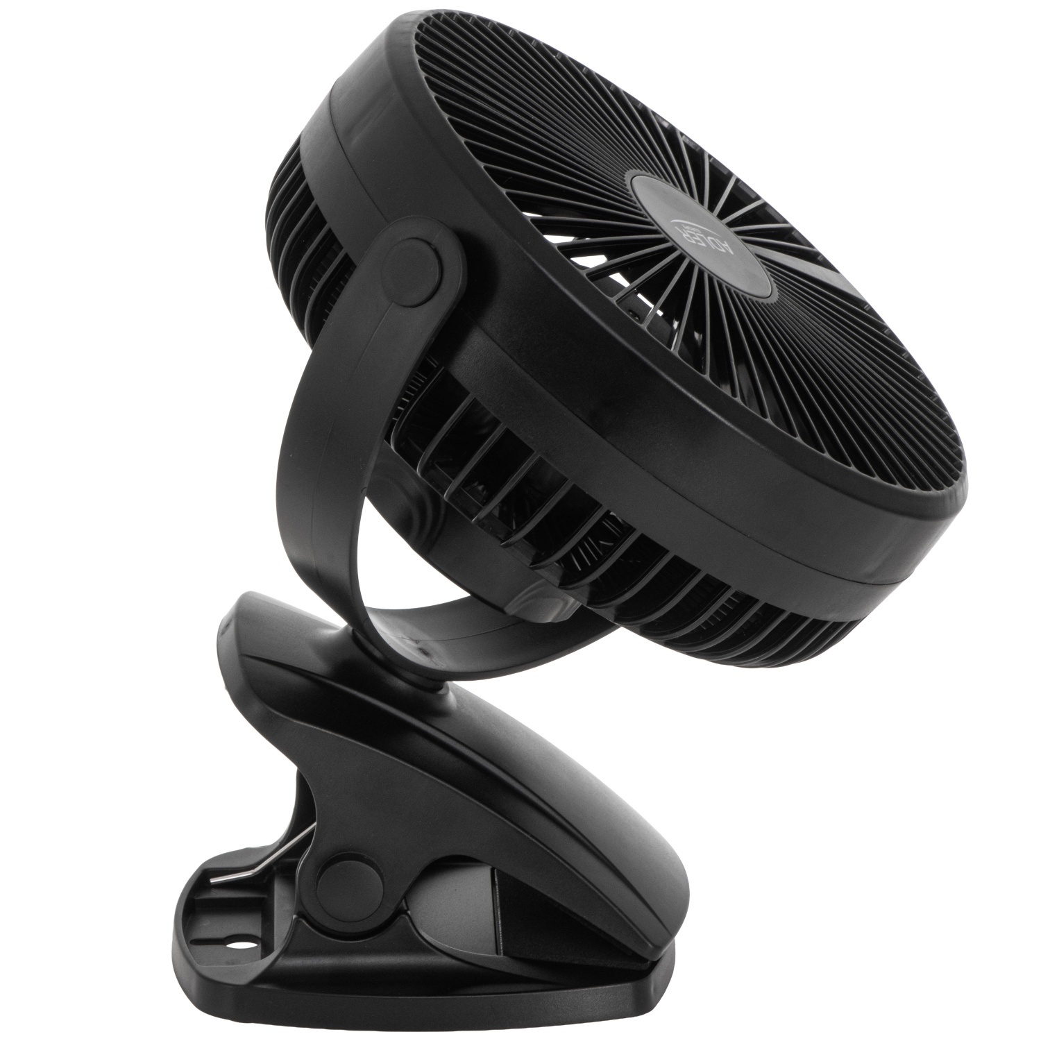 Adler AD 7342B yra įkraunamas stalinis ventiliatorius su spaustuku ir osciliacijos funkcija, skirtas efektyviai oro cirkuliacijai darbo vietoje ar kambaryje. 15,5 cm skersmuo, trys greičio lygiai, 360° osciliacija ir tik 5 W energijos sąnaudos užtikrina kompaktišką, universalų ir patogų naudojimą juodos spalvos korpuse.