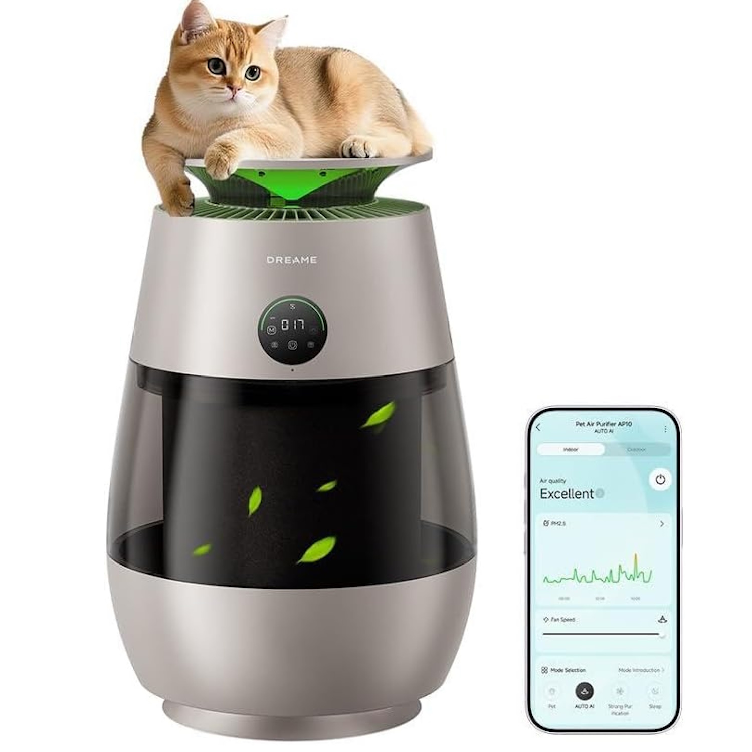 Dreame Pet Air Purifier AP10 (CVF61A) yra aukščiausios klasės oro valytuvas, specialiai sukurtas naminių gyvūnų savininkams. Jis efektyviai valo orą nuo gyvūnų plaukų, dulkių, alergenų ir kvapų, naudodamas 360° oro cirkuliaciją, penkių pakopų filtravimo sistemą ir HEPA filtrą. Įrenginys užtikrina galingą oro srautą su maždaug 430 m³/h CADR, todėl tinka gyvenamųjų patalpų oro kokybei gerinti.