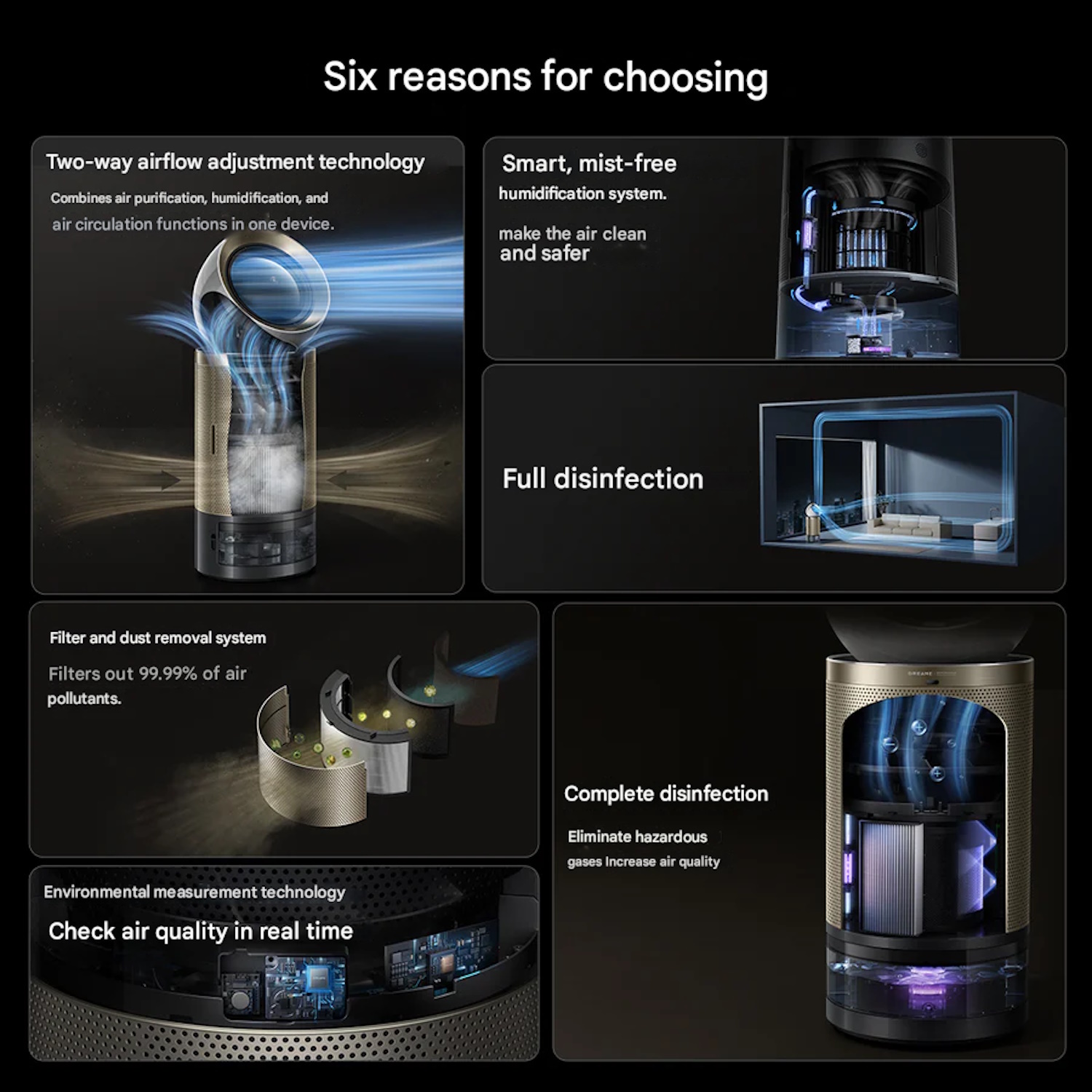 Dreame Air Purifier PM30 (modelis CVF15A) yra išmanus oro valytuvas su drėkinimo funkcija, kuris sujungia efektyvų oro filtravimą ir drėkinimą be matomo rūko viename įrenginyje. Jis gerina patalpų oro kokybę, mažina dulkių, alergenų ir kvapų kiekį bei užtikrina komfortišką, tolygiai sudrėkintą aplinką didesnėse patalpose.