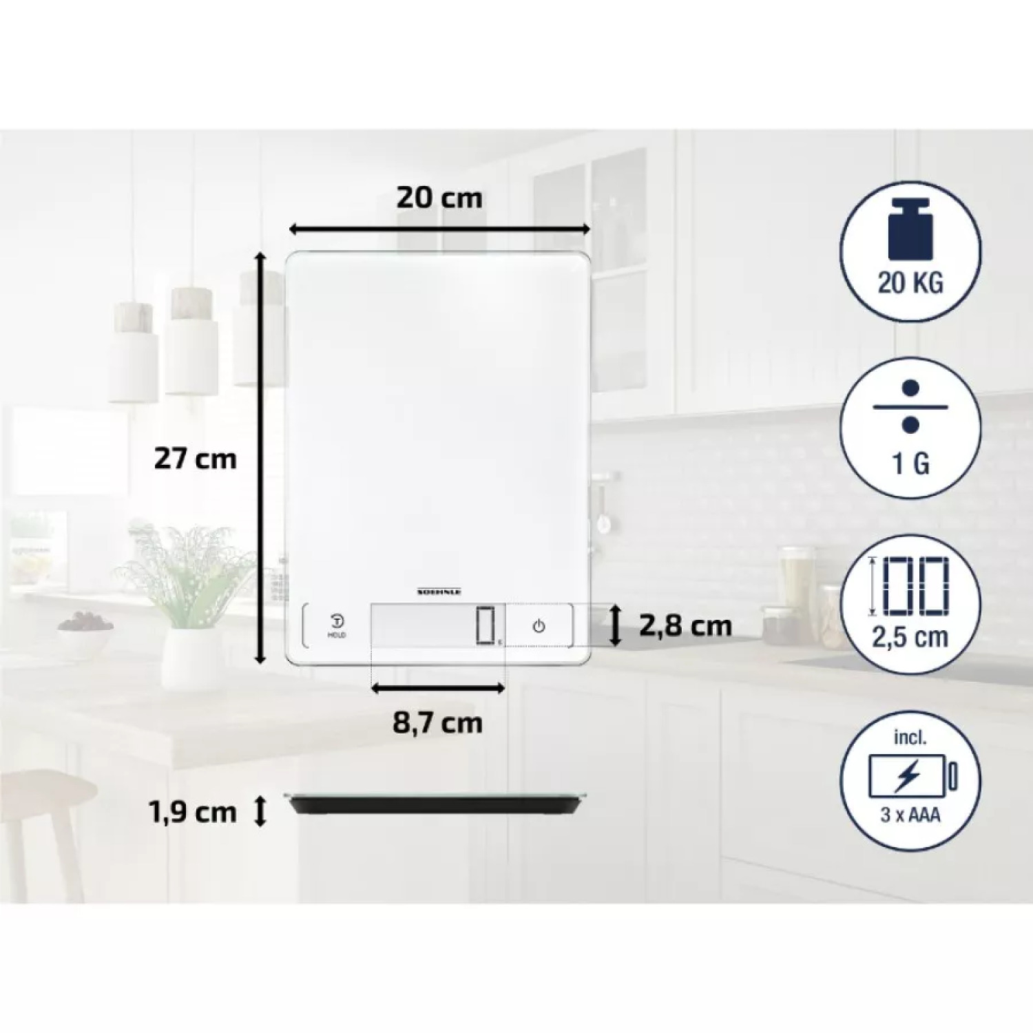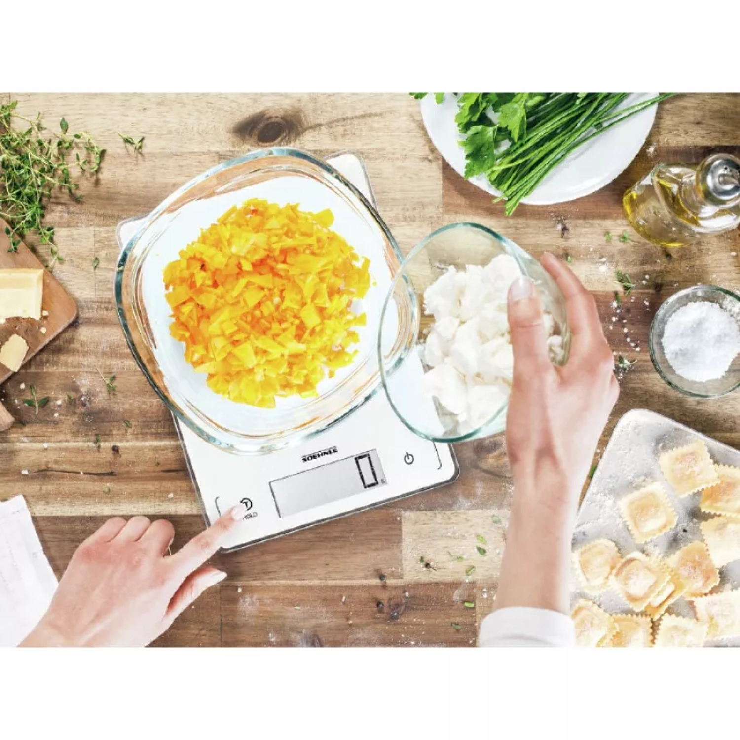 Praktiška svorio pridėjimo funkcija leidžia sverti ir pridėti bet kurį ingredientą. Dėl plono ir kompaktiško dizaino, svarstyklės užima mažai vietos jūsų virtuvėje.