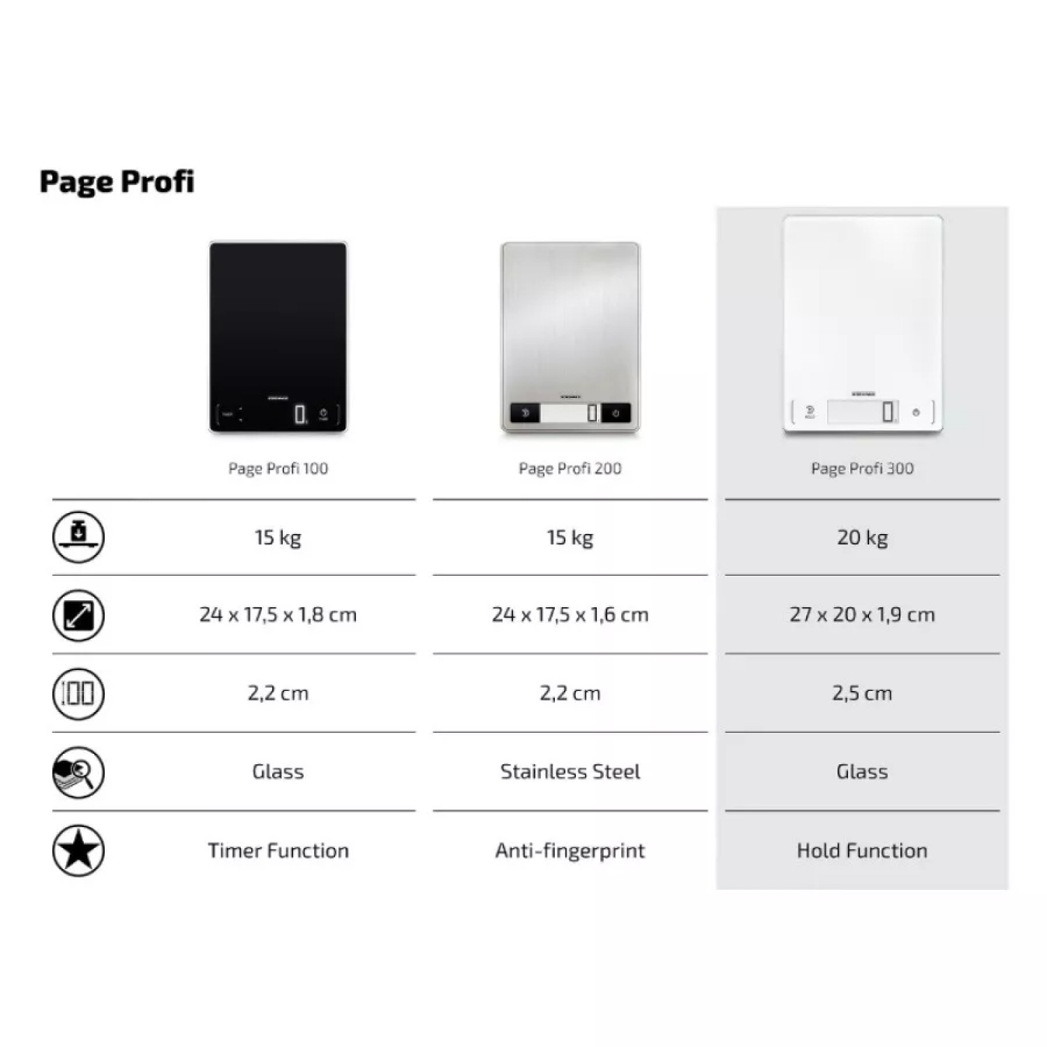 Soehnle Page Profi 300 elektroninės virtuvinės svarstyklės siūlo daugybę įspūdingų funkcijų.