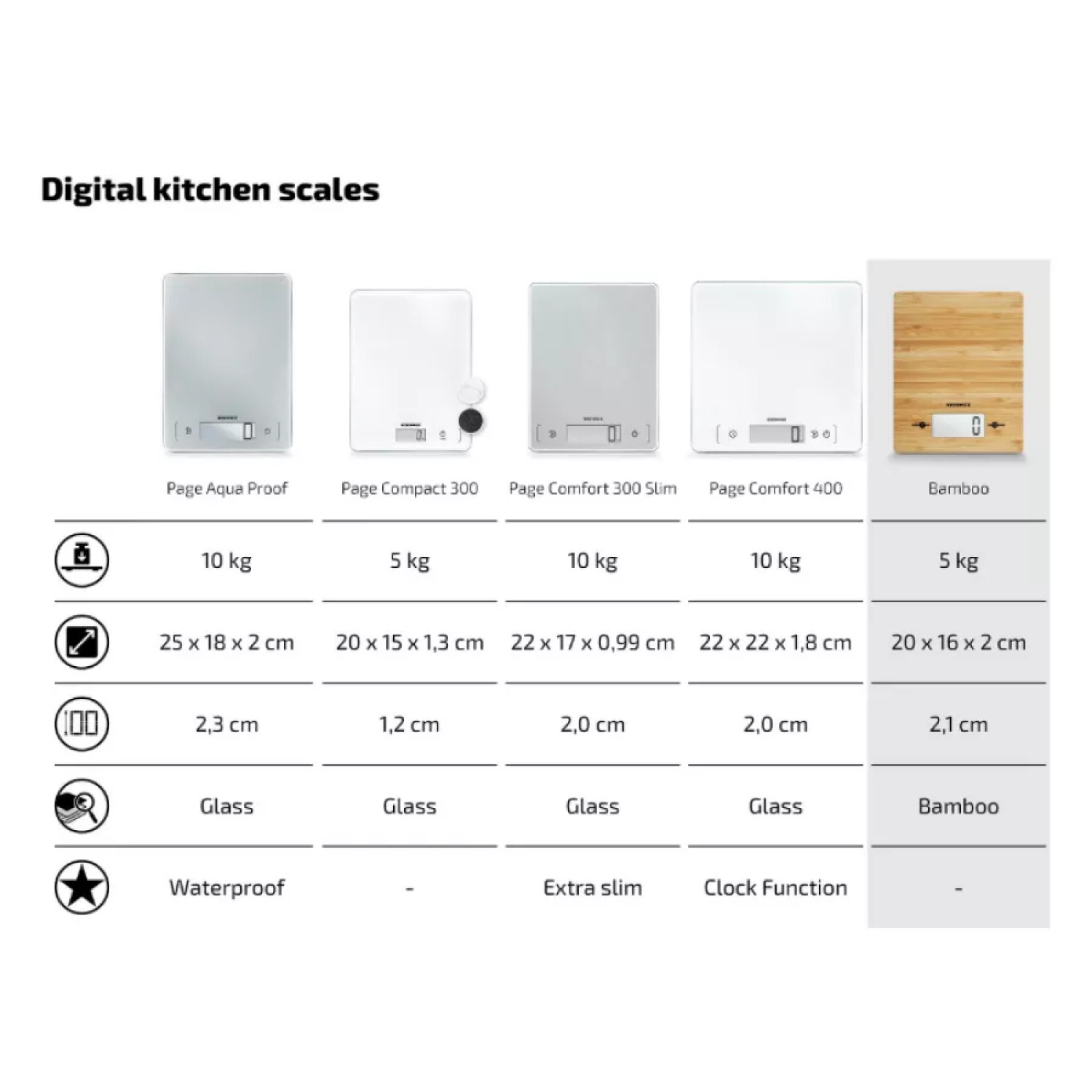 | Tipas | Elektroninės virtuvės svarstyklės; Virtuvinės svarstyklės |