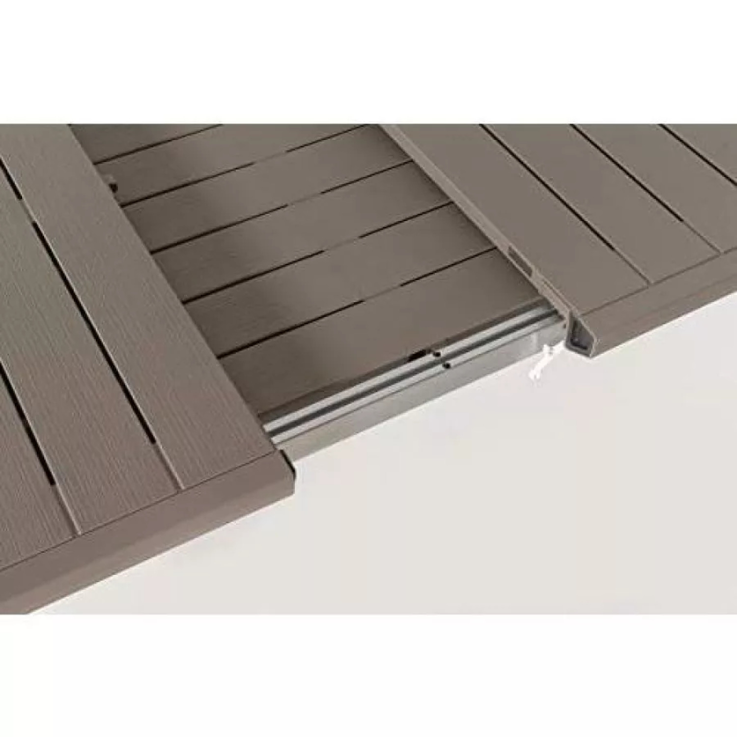 Jo išskirtinė paviršiaus tekstūra primena natūralų medį. Šis stalas puikiai tinka didelėms erdvėms, tokioms kaip sodas ar terasa, leidžiantis organizuoti šeimos šventes ar susitikimus su dideliais draugų būriais.