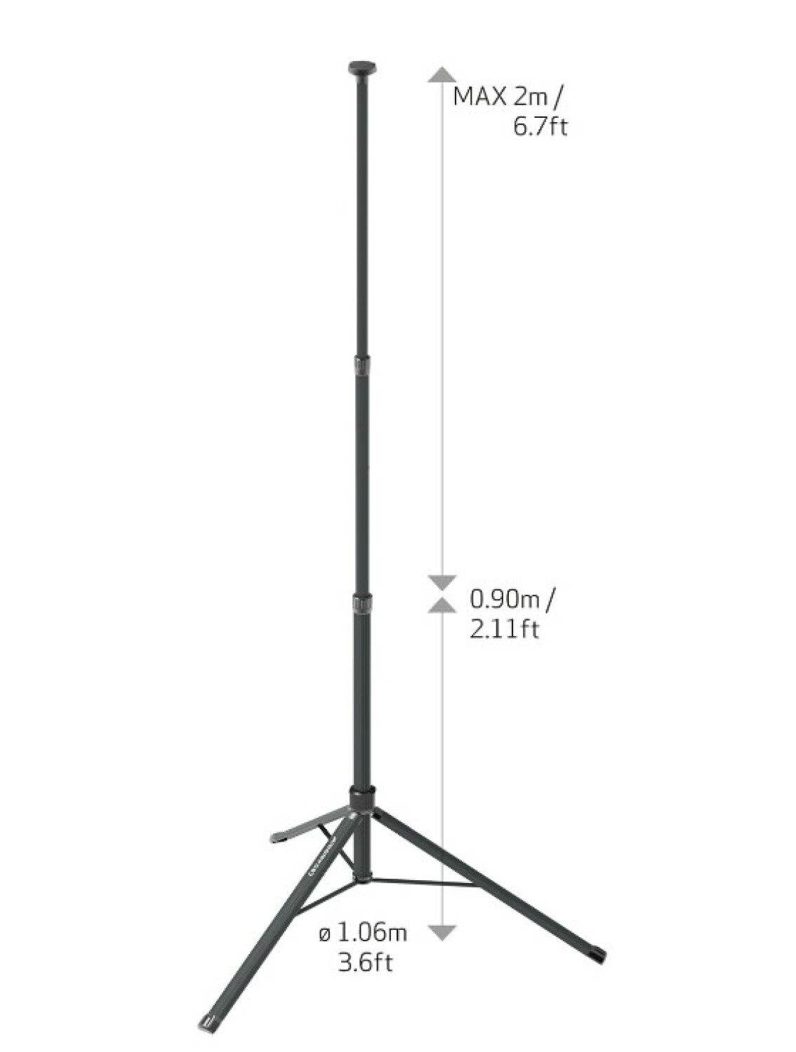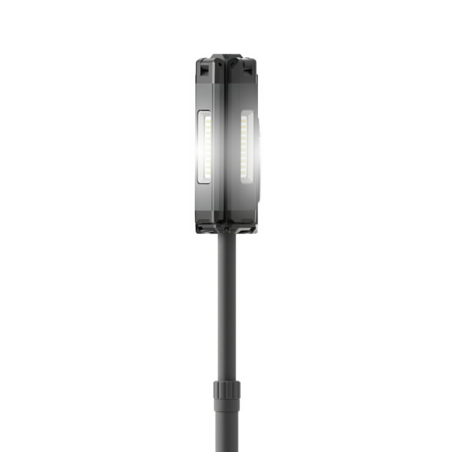 Stovas gali būti prailgintas nuo 0,9 m iki 2 m ir suteikia visišką lankstumą, kad darbinė šviesa būtų nustatyta reikiamame aukštyje. Dėl QUICK RELEASE funkcijos stovą galima greitai įrengti per keletą sekundžių ir lengvai sulankstyti, kai darbas baigtas.