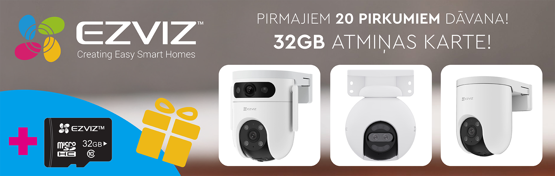 Iegādājies jebkuru no 3 EZVIZ āra kameru modeļiem un saņem 32 GB atmiņas karti dāvanā. Tik ierobežots daudzums — tikai pirmajiem 20 pirkumiem.