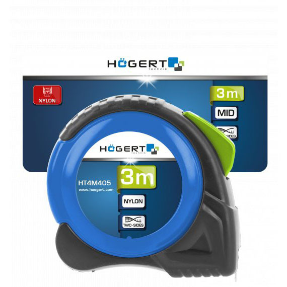 II precizitātes klase; izgatavots saskaņā ar ES mērinstrumentu direktīvu (MID); tērauda lente ar biezumu 0,12 mm, pārklāta ar neilonu, palielinot apdrukātā slāņa izturību un izturību pret nodilumu; automātisks lentes bloķēšanas mehānisms, kas atbrīvots ar pogu vieglai mērīšanai; lente ar abpusēju apdruku horizontālā un vertikālā izkārtojumā, īpaši noderīga vertikālo elementu mērīšanai; uzgaļu stiprinājums, kas pastiprināts ar divām kniedēm (HT4M405 un HT4M406) vai trim kniedēm (HT4M407); pārsega sastāvdaļas, kas izgatavotas no neslīdoša materiāla, ļaujot ērti satvert praktisku jostas klipsi.