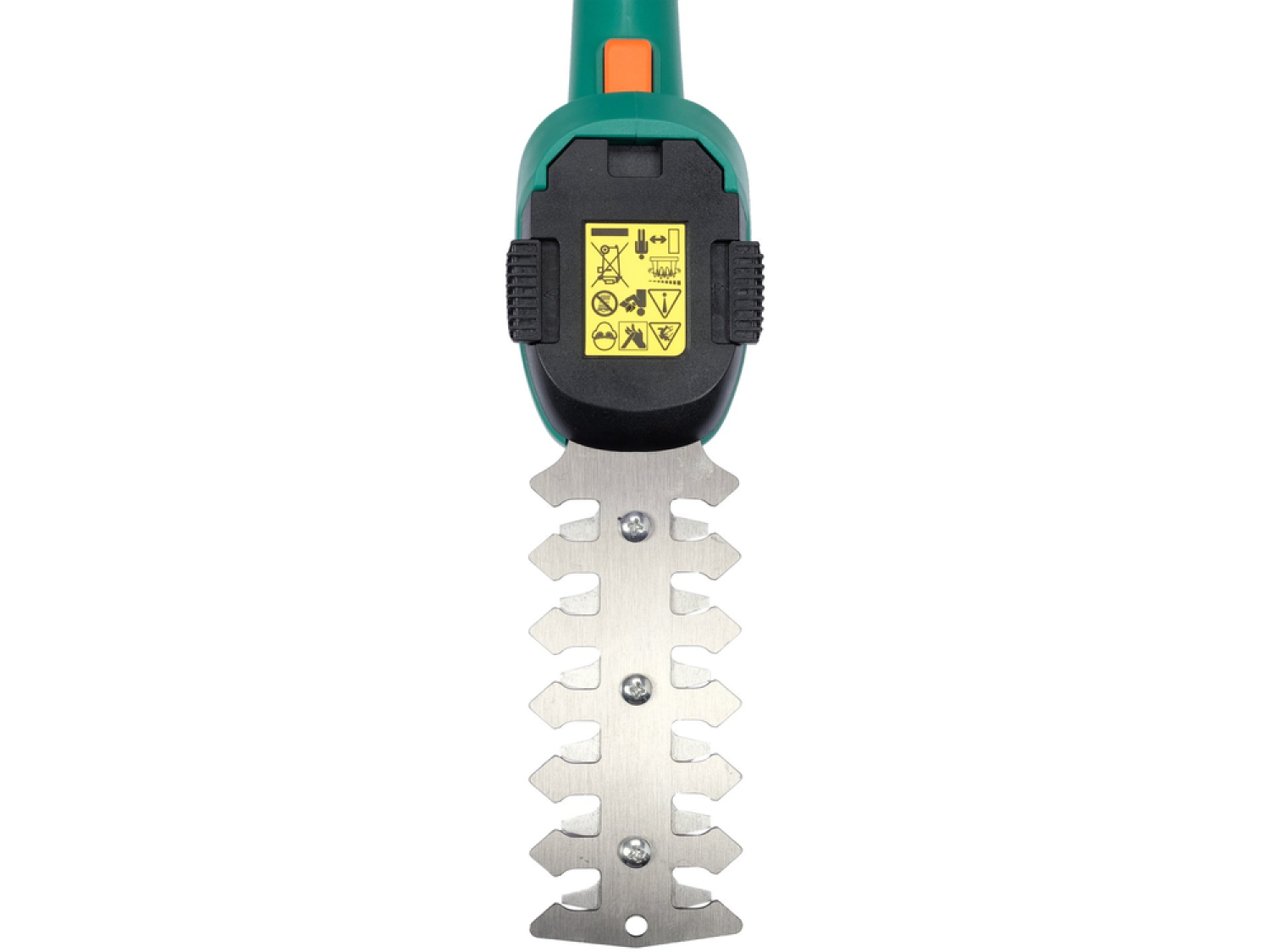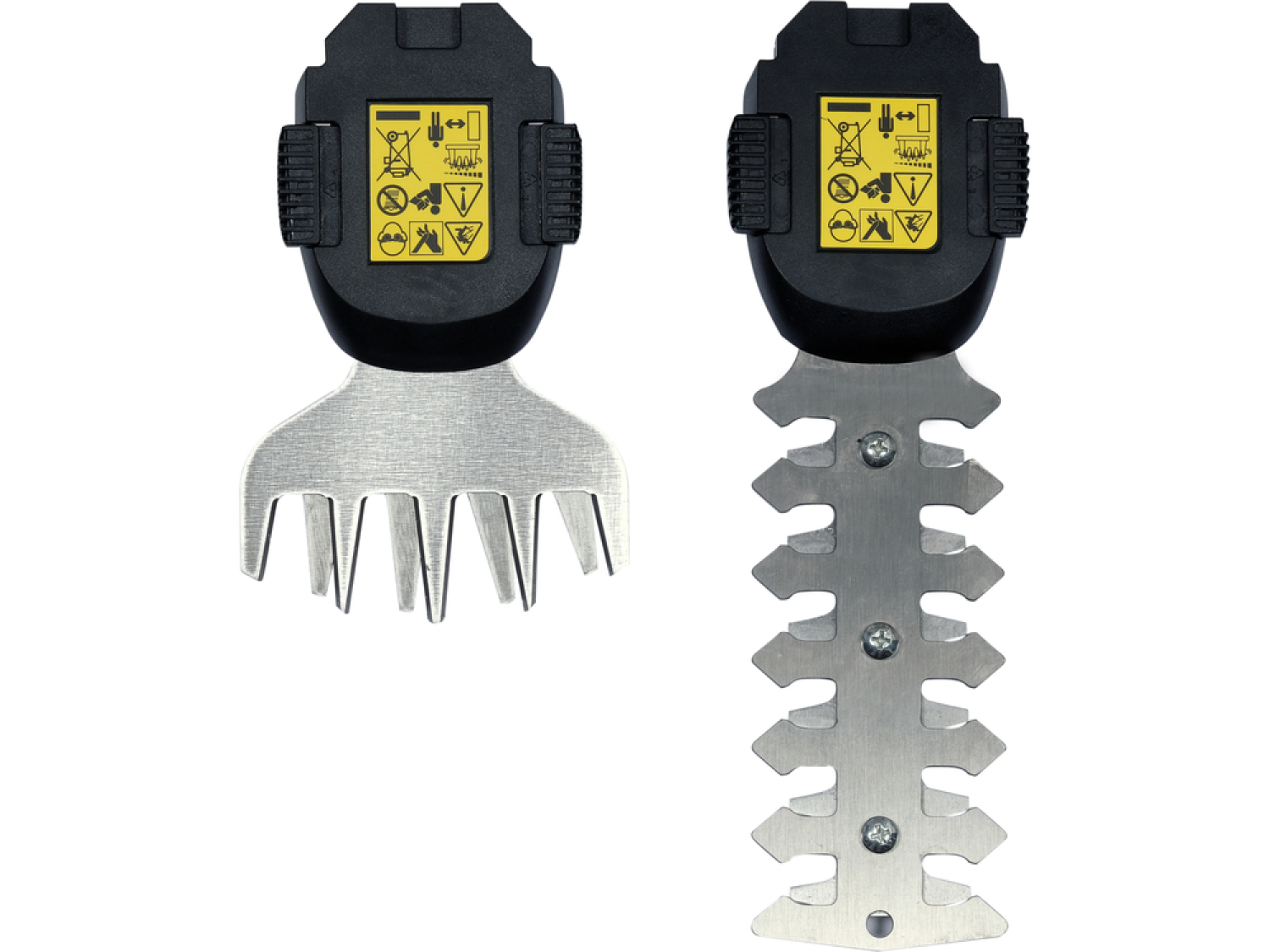 Šķēru komplektā ir izmantojamas uzgaļi: 90 mm zāles apgriešanai un 120 mm dzīvžoga apgriešanai.
