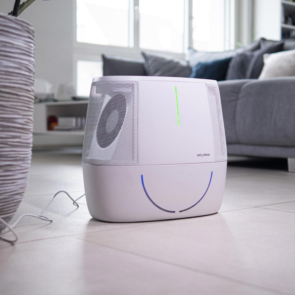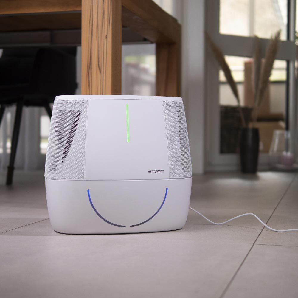 Aukstā tvaika mitrināšanas (iztvaikošanas) tehnoloģija ir viena no dabiskākajām un rada vismazākās neērtības starp visām gaisa mitrināšanas metodēm. ANTARES Stylies gaisa mitrinātājs mitrināšanai izmanto īpašus filtrus, kas piesātina ar ūdeni. Tīrs un dabīgs mitrums no mitrinātāja filtra tiek pārnests uz ieplūdes gaisu un, izmantojot klusu ventilatoru, tiek sadalīts visā telpā. Šī mitrināšanas tehnoloģija neizkliedē kaļķakmeni, jo no filtriem tiek pārnests tikai tīrs mitrums. Turklāt kondensāts nesāks uzkrāties ap gaisa mitrinātāju, jo gaiss ir piesātināts ar mitrumu pašā iekārtā un ūdens netiek izsmidzināts telpā. Arī gaisa mitrinātājs ANTARES Stylies neradīs miglas efektu gaisā un nepasliktinās redzamību telpā.