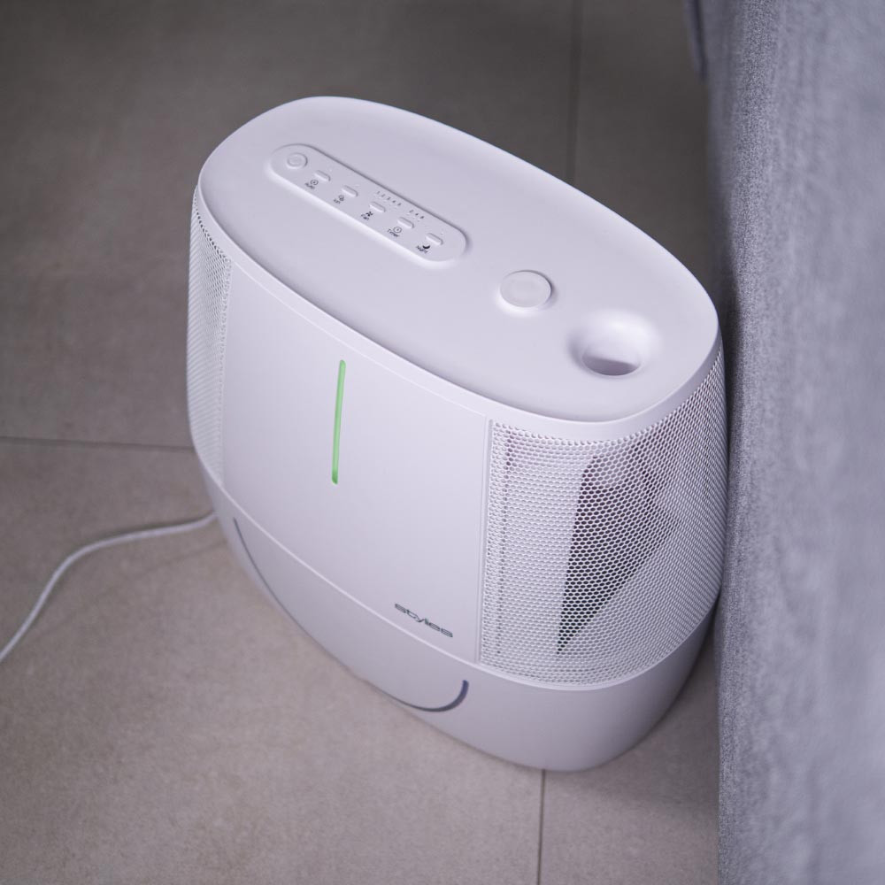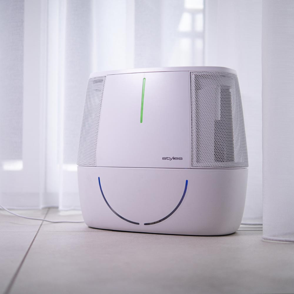 Gaisa mitrinātājs - gaisa mazgātājs ANTARES Stylies efektīvi mitrina gaisu un prasa nelielu apkopi, tāpēc ikvienam, kas meklē veselīgāku un mitrāku gaisa risinājumu, tas patiks. Mitrinātājā mitruma iztvaicēšanai izmantotā īpaša materiāla filtrs griežas, lai piesaistītu ūdeni, kas tiek pārnests gaisa plūsmā, kas iet caur šo filtru. Tādā veidā gaisa mitrināšanas process ir dabisks, un gaiss noteiktā brīdī absorbē tikai tik daudz mitruma, cik tie spēj absorbēt un noturēt. Darbojoties ar šo mitrināšanas principu, mitrinātājs neatstāj vidē kaļķakmens un nerada miglas efektu telpā. Gaisa mitrinātājs ANTARES Stylies ir ideāli piemērots lietošanai: