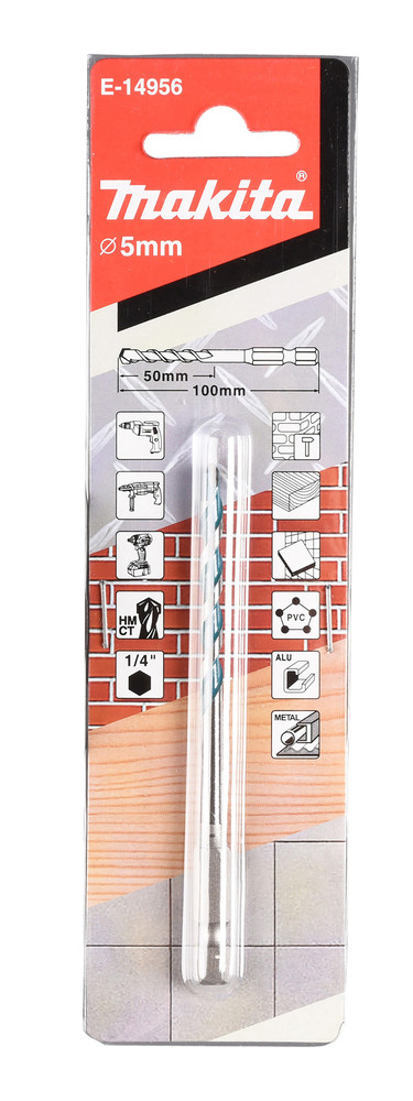 TCT universālie urbjis multi materiāliem 5X100mm, 1/4", E-14956 MAKITA