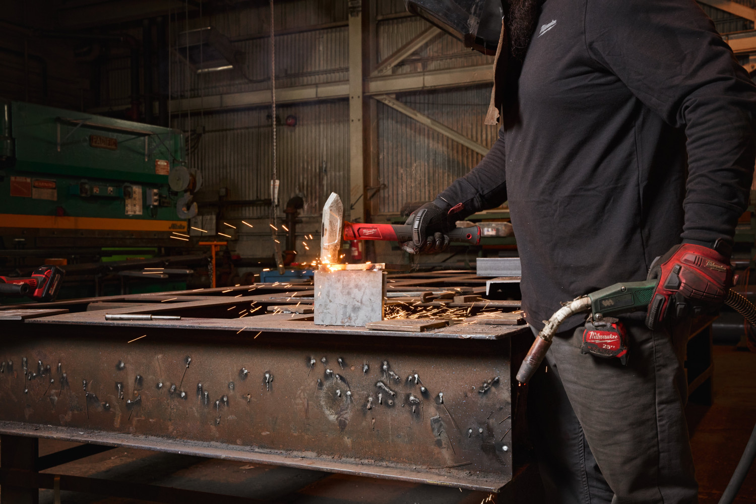 Pakarināšanas atvere ērtai piestiprināšanai Milwaukee drošības aprīkojuma klāstam, kas ļauj to izmantot augstumā.