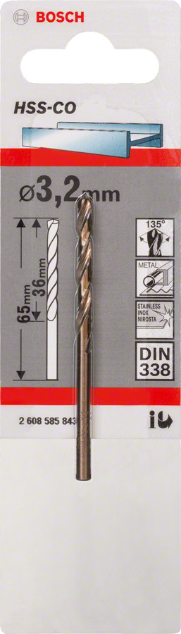 HSS-Co urbis metālam 3,2mm, 1 gab., Urbjmašīnām/skrūvgriežiem KOBALTA HSS SPIRĀLVEIDA URBIS, 2608585843, BOSCH