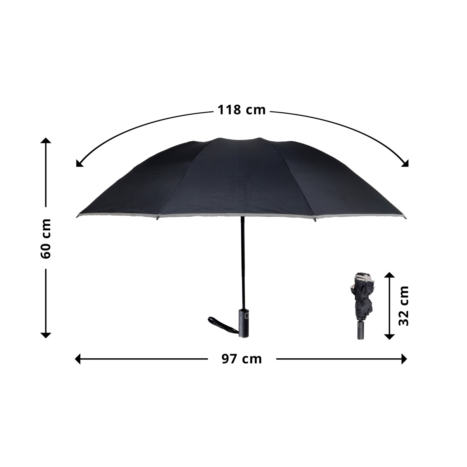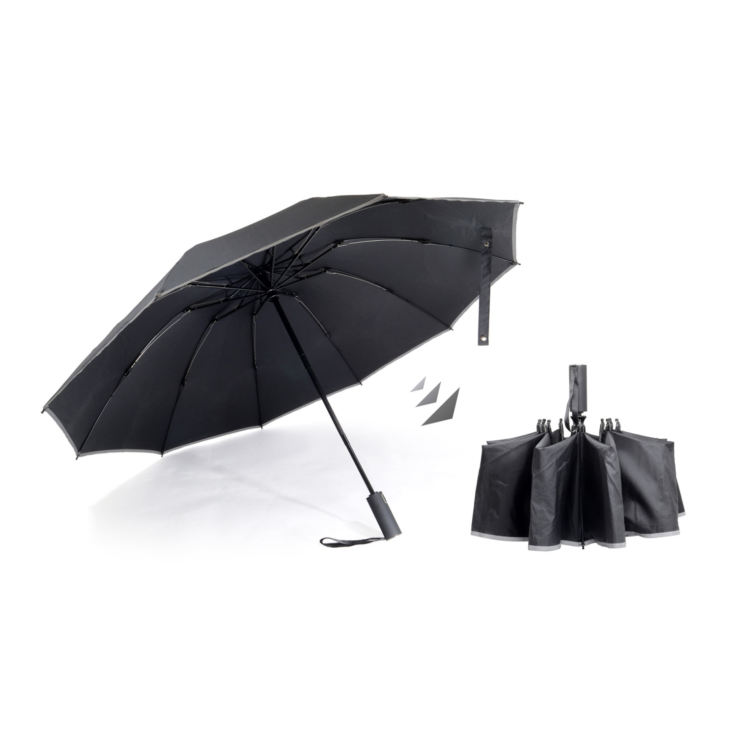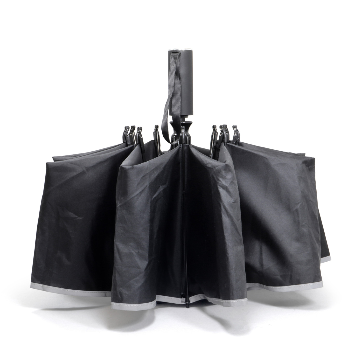 Šis lietussargs, izgatavots no pārstrādāta poliestera, ir bez PFAS un atveras un aizveras iekšpusē, tādējādi mitrā puse paliek iekšā, kad tas ir aizvērts, bet ārējā vide paliek sausa. Pastiprināts ar 10 augstas kvalitātes stikla šķiedras stabiem, tas iztur spēcīgas vēja brāzmas. Ap visu virsotni ir 360° atstarojoša josla, kas nodrošina labāku redzamību sliktos laika apstākļos. Vienkāršā darbība ar vienu roku, nospiežot pogu, atvieglo lietussarga atvēršanu un aizvēršanu. Lietussargu var viegli atvērt un novietot uz nelielas virsmas, lai tas izžūtu, bez lietussarga statīva. Ergonomiskais un neslīdošais rokturis ir ērti turams, pateicoties gumijas pārklājumam. Pateicoties apgrieztajai funkcijai, tas ir ideāli piemērots iekāpšanai un izkāpšanai no transportlīdzekļa. Iekļauts apvalks.