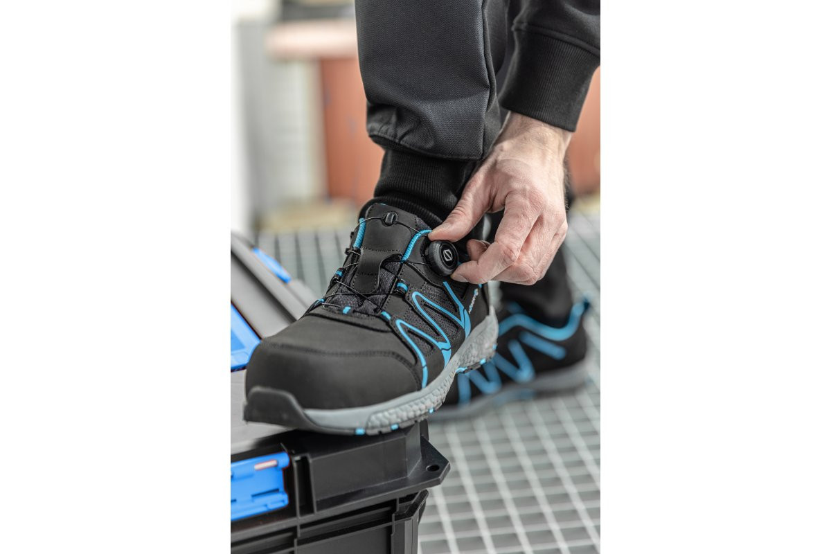 Vīriešu aizsargapavi atbilst S1P klasei saskaņā ar ISO 20345:2022 standartu. Augstas kvalitātes izpildījums nodrošina ērtību un komfortu lietošanā. Modelis aprīkots ar LACE SYSTEM ātrai saistīšanai un precīzai apavu piegulšanai. Apaviem ir kompozīta vieglais purngals, kas aizsargā pirkstus, piemēram, pret krītošiem objektiem, gružiem un rīkiem. Pateicoties pretslīdes zolei, apavi ir ideāli piemēroti staigāšanai pa nelīdzeniem un slideniem virsmām. Ieteicami loģistikas, transporta, automobiļu nozarē un renovācijas darbos. Tie ir lieliski piemēroti iekštelpām (piemēram, zālēm).