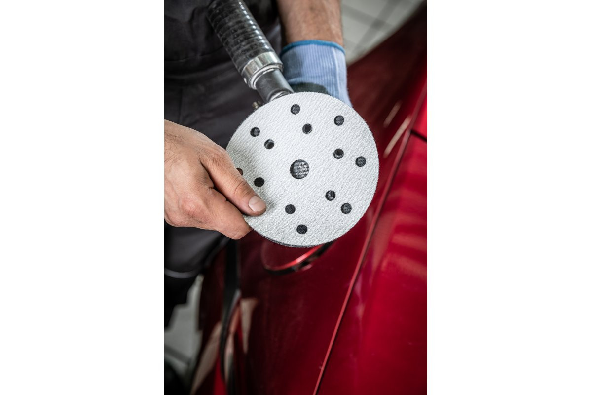 Abrasīvais disks ar Velcro, 150 mm diametrā, paredzēts darbam ar leņķa un ekscentriskajiem slīpmašīnām, urbjiem vai skrūvgriežiem, kas aprīkoti ar atbilstošiem piederumiem. Ideāli piemērots špakteles, krāsu un lakas slīpēšanai. Galvenokārt izmanto rūpniecībā, amatniecībā un būvniecībā. Paredzēts profesionālai lietošanai.