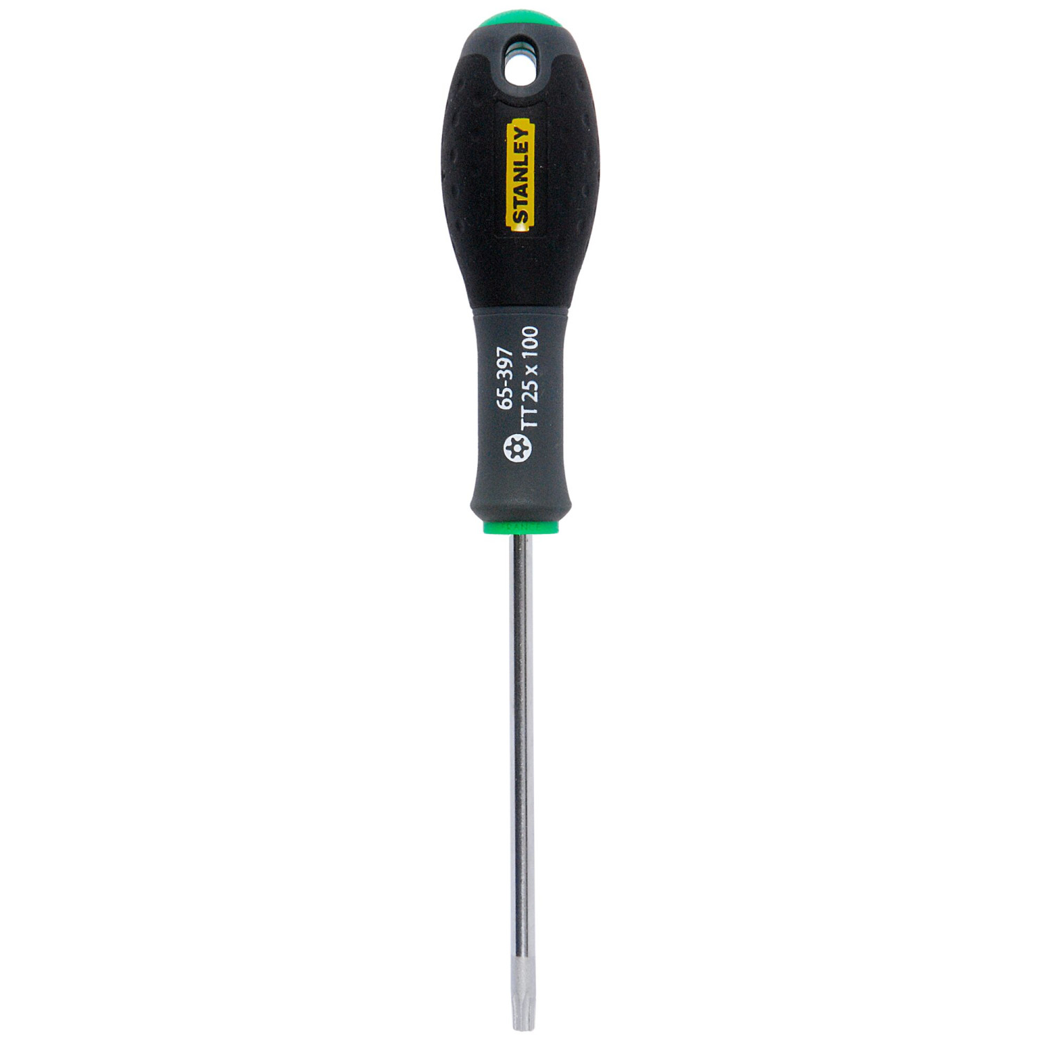 STANLEY® FATMAX® Torx® skrūvgriezis TT25 X 100 mm ir ideāls risinājums prasīgiem profesionāļiem, nodrošinot +100% ilgāku uzgaļa kalpošanas laiku*. Izgatavots no izturīga oglekļa silīcija tērauda, tas piedāvā lielāku izturību un veiktspēju, kā arī ilgāku produkta mūžu. Uzgalis ir smilšpapīrēts ražošanas procesā, lai uzlabotu aizsardzību pret koroziju un nodilumu. Rūpīgi izstrādāts STANLEY® Francijā, šis skrūvgriezis atbilst visstingrākajiem standartiem un specifikācijām, nodrošinot izcilu lietojamību un uzticamību. Lielais mīkstā roktura tri-materiāla dizains ir ergonomiski veidots maksimālam komfortam, padarot to īpaši piemērotu intensīvām un atkārtotām lietojumprogrammām. Pateicoties izcilajai saķerei, šaurajai jostasvietai un gludajam, kupolveida galam, šis rokturis nodrošina lielisku griezes momentu, ātrumu, kontroli un lietošanas ērtumu sarežģītās skrūvēšanas vai atskrūvēšanas situācijās.