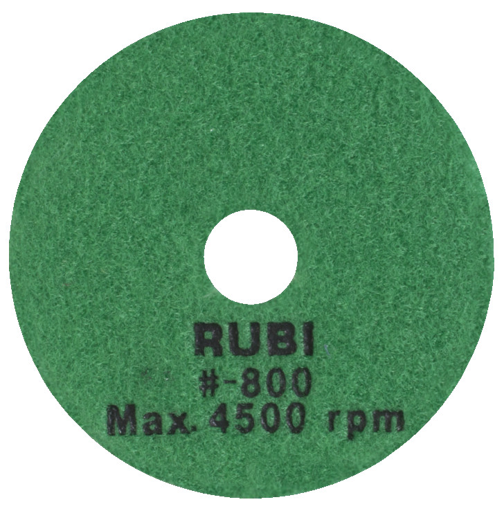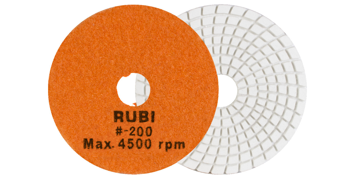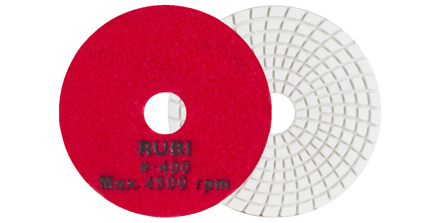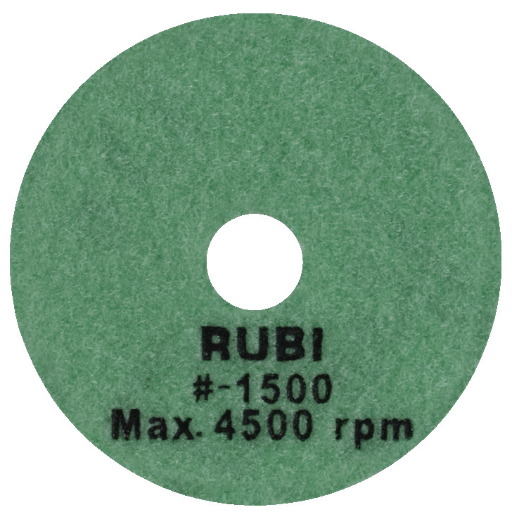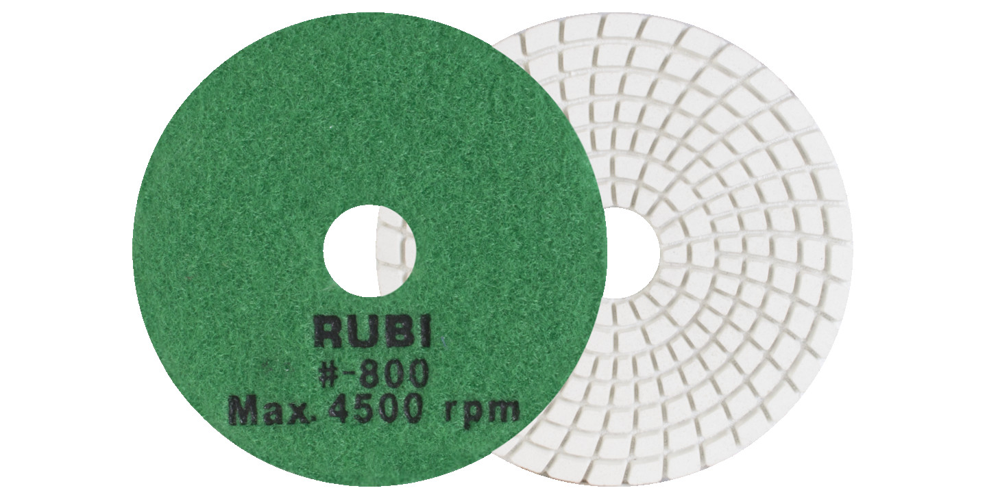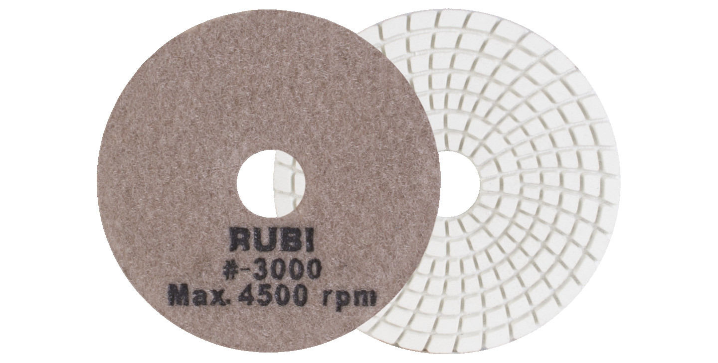 RUBI pulēšanas spilventiņi ir īpaši izstrādāti mitrai apstrādei dabīgā akmens virsmām, īpaši granītam un marmoram, kā arī cietajam betonam. Mūsu pulēšanas spilventiņi nodrošina būvniecības profesionāļiem izcilu apdari uz jebkuras plaknes un slīpēšanai gan marmora, gan granīta, kā arī citiem dabīgajiem akmeņiem un cietajam betonam. RUBI mitrās apstrādes pulēšanas spilventiņu klāsts ietver dažādas graudu izmērus: 50, 100, 200, 400, 800, 1500 un 3000. Visi tie ir identificēti un krāsaini kodēti ātrai un vieglai atpazīšanai. 50 un 100 graudu pulēšanas spilventiņi ir paredzēti sākotnējai apstrādei, kad nepieciešams lielāks graudu izmērs, un maksimālā darba ātrums nedrīkst pārsniegt 4500 apgr./min. 200, 400 un 800 graudu pulēšanas spilventiņi ir paredzēti vidējai pulēšanai, un to maksimālais ātrums ir 4500 apgr./min. 1500 un 3000 graudu pulēšanas spilventiņi ir vissmalkākie un ieteicami gala pulēšanai. To maksimālais darba ātrums nedrīkst pārsniegt 4500 apgr./min. Lai pabeigtu pulēšanas spilventiņu klāstu, RUBI iekļauj BUFF spilventiņu, kas nepieciešams gala apdarei dabīgā akmens un cietā betona pulēšanas darbos. Šī spilventiņa maksimālais darba ātrums ir 4500 apgr./min. RUBI nepārtraukti pēta materiālu attīstību un ņem vērā prasības, ko sniedz vadošie keramikas flīžu ražotāji visā pasaulē, 30 000 RUBI izplatītāju un vairāk nekā 40 000 beigu lietotāju, kas reģistrēti Club RUBI. Pateicoties tam, RUBI tīrīšanas, aizsardzības un apkopšanas klāsts ir unikāls tirgū, piedāvājot visaptverošu risinājumu lietotājam, nodrošinot produktus visām apstrādes fāzēm, kā arī nepieciešamos rīkus veiksmīgai realizācijai.