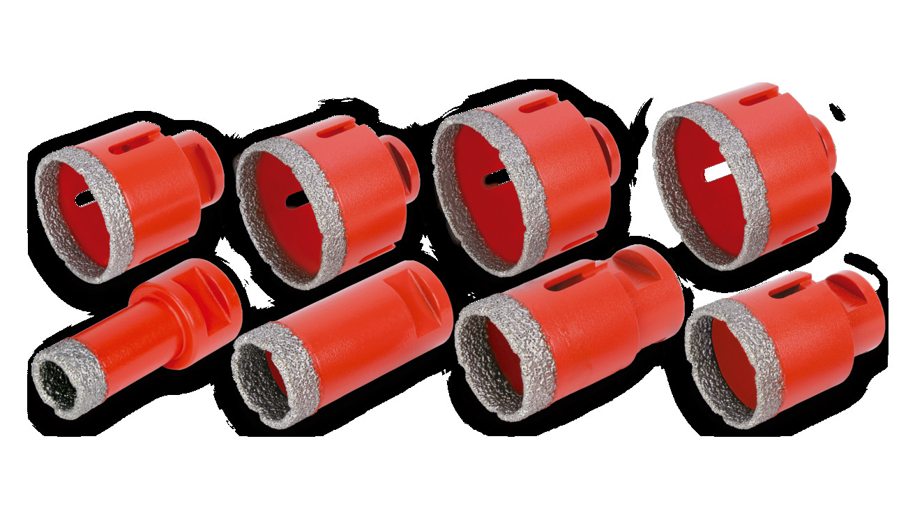 DRYGRES dimanta urbji ir ideāli piemēroti visiem keramikas flīžu veidiem, īpaši porcelāna akmens izstrādājumiem, kā arī citiem pārklājuma materiāliem, piemēram, marmoram un granitam. RUBI ir izmantojusi vakuuma metināšanas tehnoloģiju VACUUM BRAZED, kas palielina temperatūras un berzes izturību, lai nostiprinātu dimanta daļiņas griešanas zonā. DRYGRES urbji ar diametru Ø 6 līdz 12 mm ir lieliski piemēroti vannas istabas piederumu vai jebkura veida dekoratīvo elementu uzstādīšanai uz keramikas virsmām. Pārējie diametri no Ø 20 līdz 75 mm ir izstrādāti, lai flīžu uzstādītāji varētu sasniegt labākos rezultātus, veicot nepieciešamās perforācijas ūdens pievadiem, notekcaurulēm, gaismas punktiem utt. DRYGRES dimanta urbji ir paredzēti sausai griešanai un var tikt izmantoti tieši ar slīpmašīnu vai elektrisko urbi bez trieciena, izmantojot urbja adapteri (ref 05976). Vidējais DRYGRES urbju kalpošanas laiks atšķiras atkarībā no diametra: Ø 6 līdz 12 mm vidējais kalpošanas laiks ir 25 caurumi, bet Ø 20 līdz 75 mm - 60 caurumi. Urbju kalpošanas laiks vienmēr ir atkarīgs no materiāla veida, tā biezuma un pareizas dzesēšanas un lietošanas. DRYGRES urbju urbšanas dziļums ir 36 mm. Diametros Ø 6, 8, 10 un 12 mm DRYGRES urbji satur vasku, kas izkūst urbšanas laikā, atvieglojot dzesēšanu un urbšanas atlikumu izvadīšanu (ja vasks izsīkst, urbis var turpināt darbu; tikai pilnīga dimanta zudums norāda uz urbja kalpošanas laika beigām). DRYGRES urbji (diametri Ø 20 līdz 75 mm) ir aprīkoti ar sānu atveri, kas uzlabo urbja dzesēšanu un atvieglo cietā atkritumu izvadīšanu pēc katras urbšanas. Pirms jaunas perforācijas veikšanas jāpārliecinās, ka urbis ir tīrs un brīvs no jebkādām aizsprostojumiem. Maksimālā lietošanas ātrums DRYGRES dimanta urbjiem ir līdz 14000 apgr./min. Lai nodrošinātu labāku apdari un ilgāku urbja kalpošanas laiku, ir svarīgi ievērot pareizu griešanās ātrumu un veikt vieglu orbītu kustību urbšanas laikā.