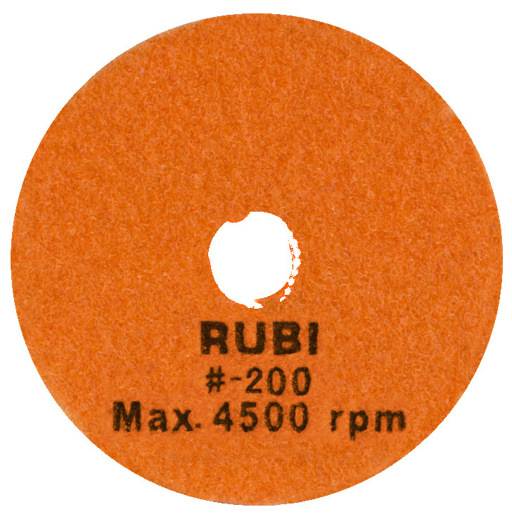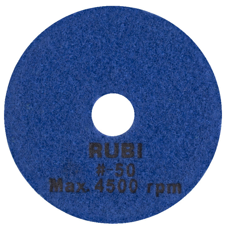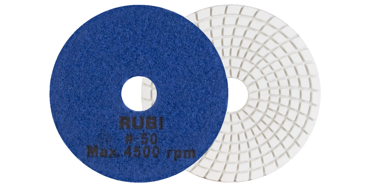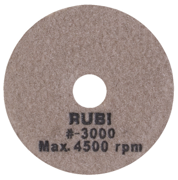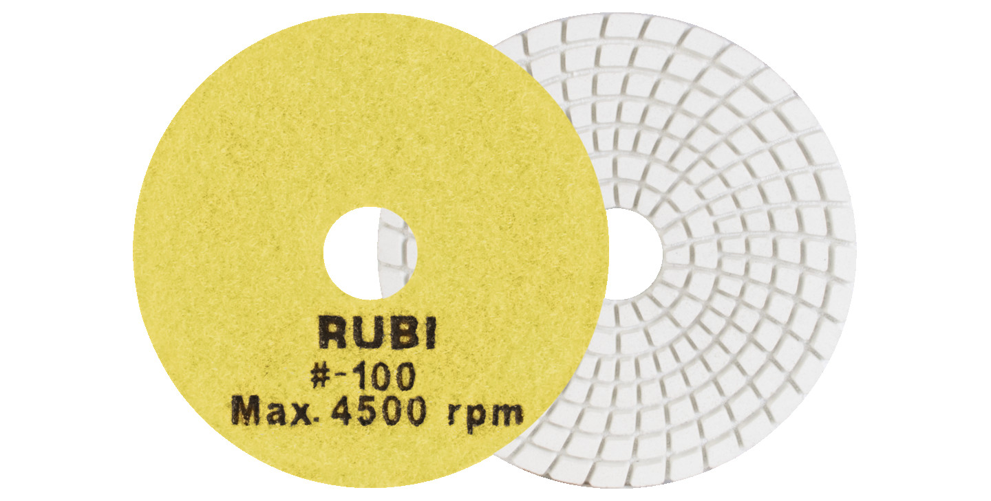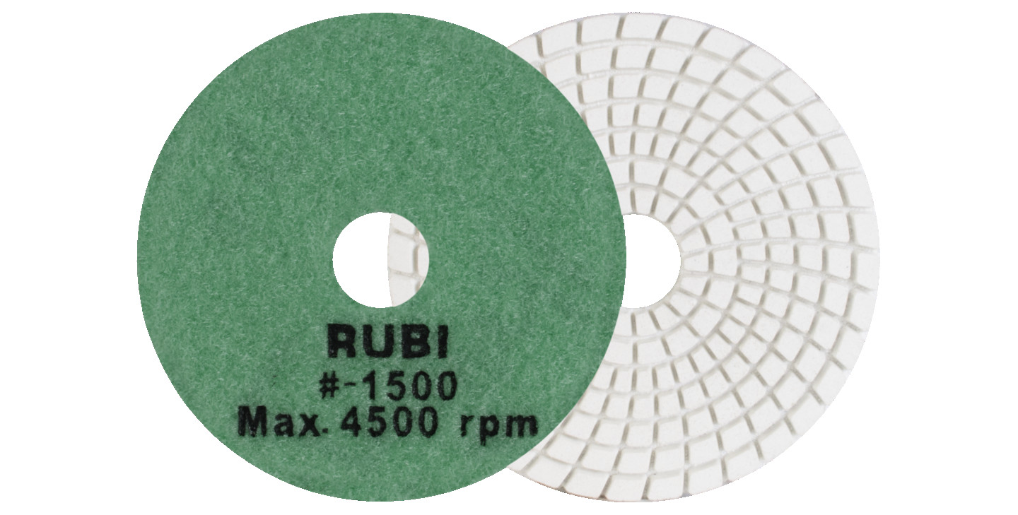 RUBI pulēšanas spilventiņi ir īpaši izstrādāti mitrai apstrādei dabīgā akmens virsmām, īpaši granītam un marmoram, kā arī cietajam betonam. Mūsu pulēšanas spilventiņi nodrošina būvniecības profesionāļiem izcilu apdari uz jebkuras plaknes un slīpēšanai gan marmoram, gan granītam, kā arī citiem dabīgajiem akmeņiem un cietajam betonam. RUBI mitrās apstrādes pulēšanas spilventiņu klāsts ietver dažādus graudu izmērus: 50, 100, 200, 400, 800, 1500 un 3000. Visi tie ir identificēti un krāsaini kodēti ātrai un vieglai atpazīšanai. 50 un 100 graudu pulēšanas spilventiņi ir paredzēti sākotnējai apstrādei, kad nepieciešams lielāks graudu izmērs, un maksimālais darba ātrums nedrīkst pārsniegt 4500 apgr./min. 200, 400 un 800 graudu pulēšanas spilventiņi ir paredzēti vidējai pulēšanai, un to maksimālais ātrums ir 4500 apgr./min. 1500 un 3000 graudu pulēšanas spilventiņi ir vissmalkākie un ieteicami gala pulēšanas darbiem. To maksimālais darba ātrums nedrīkst pārsniegt 4500 apgr./min. Lai pabeigtu pulēšanas spilventiņu klāstu, RUBI iekļauj BUFF spilventiņu, kas nepieciešams gala apdarei pulēšanas darbos uz dabīgā akmens un cietā betona. Šī spilventiņa maksimālais darba ātrums ir 4500 apgr./min. RUBI nepārtraukti pēta materiālu attīstību un balstās uz prasībām, ko sniedz vadošie keramikas flīžu ražotāji visā pasaulē, 30 000 RUBI izplatītāju un vairāk nekā 40 000 beigu lietotāju, kas reģistrējušies Club RUBI. Pateicoties visam šim, RUBI tīrīšanas, aizsardzības un apkopšanas klāsts ir unikāls tirgū, piedāvājot visaptverošu risinājumu lietotājam, nodrošinot produktus visās apstrādes fāzēs, kā arī rīkus veiksmīgai realizācijai.
