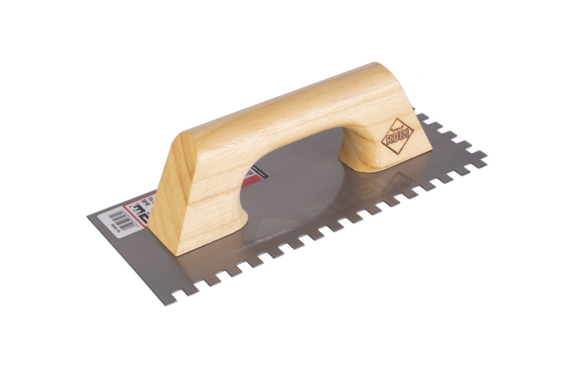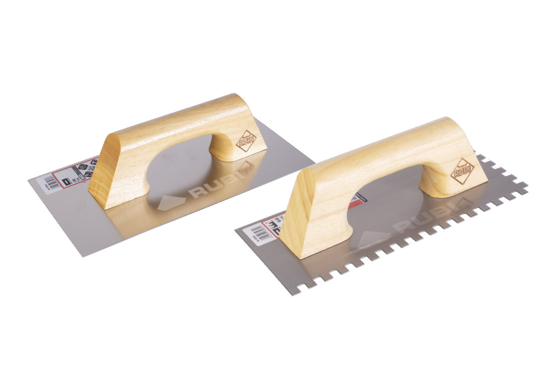 RUBI slīpēšanas un zobainās lāpstiņas ar slēgtām koka rokturiem ir aprīkotas ar īpašu tērauda plāksni, kas ir ļoti izturīga pret nodilumu un aizsargāta pret koroziju ar bezkrāsainu laku. (TĒRAUDS). Ir pieejami arī modeļi ar īpašu augsti nodilumizturīgu nerūsējošā tērauda plāksni (INOX). Visiem RUBI slīpēšanas un zobainajām lāpstiņām raksturīga ideāla asmens plakne. Koka rokturi nodrošina profesionālajiem keramikas flīžu uzstādītājiem tradicionālu rokturi ar dabīgā koka maigo pieskārienu, pateicoties pilnīgai frēzēšanai, slīpēšanai un lakošanai. Slēgtais rokturis nodrošina simetrisku instrumentu, kas ir ideāli piemērots gan labroka, gan kreisroka cilvēkiem, vienlaikus sniedzot labāk centrētu instrumentu, ko vieglāk kontrolēt un manipulēt. Savienojums starp asmeni un rokturi tiek veikts, izmantojot divus nerūsējošā tērauda skrūves, kas nodrošina instrumenta ilgstošāku kalpošanu. Vēl viens aspekts, kas izceļ RUBI slīpēšanas un zobainās lāpstiņas, ir plašais modeļu un zobu izmēru klāsts. Uzklājot līmes keramikas flīžu uzstādīšanai, vienmēr jāņem vērā katra ražotāja atvēršanas un pielāgošanas laiki. RUBI ir apņēmies nodrošināt kvalitāti. Visi mūsu produkti un instrumenti tiek pakļauti stingrām kvalitātes pārbaudēm, ko veic pieredzējuši profesionāļi. Mēs vēlamies, lai visi mūsu tirgū pieejamie produkti tiktu atzīti par kvalitāti un izturību. Šī vēlme ir padarījusi mūsu zīmolu par vienu no visnovērtētākajiem, kad runa ir par kvalitatīvu risinājumu nodrošināšanu keramikas flīžu ieklāšanas un būvniecības profesionāļiem. Papildus produktu lapām, fotogrāfijām un demonstrācijas video, RUBI piedāvā tiešu veidu, kā sazināties ar mums jebkurā laikā. Viens no šiem veidiem ir mūsu blogs www.mundocolocador.com, kur mēs runājam par daudziem aspektiem, kas saistīti ar keramikas flīzēm un uzstādīšanas tehnikām. Lai iegūtu tūlītēju un personalizētu informāciju, varat sazināties ar mums, izmantojot sadaļu "Atklāj RUBI", kur varat tieši iesniegt savus pieprasījumus, vai caur mūsu sociālajiem tīkliem, Facebook, Twitter utt.