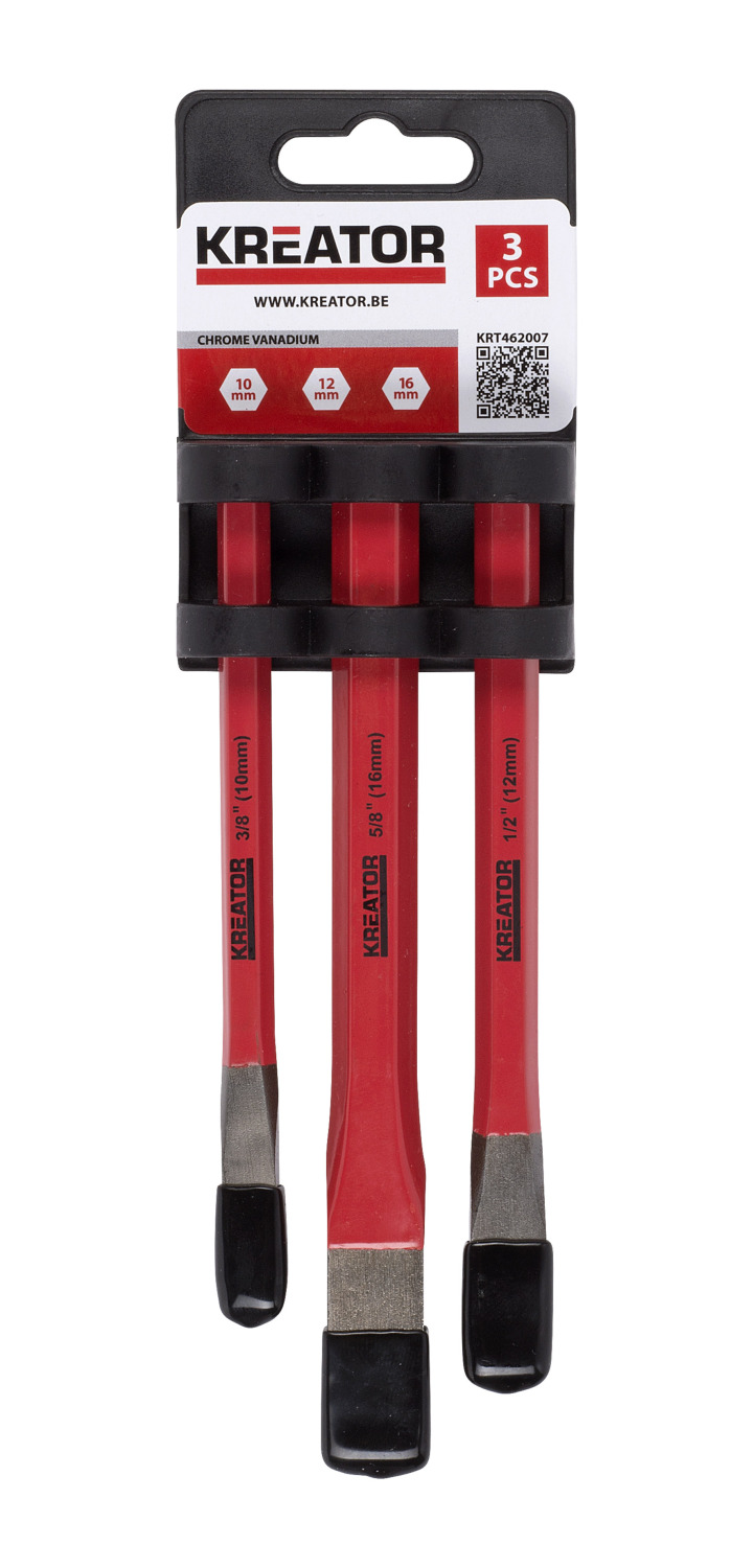 Auksto kaltu komplekts - 3 šķirnes KREATOR zīmolā ar modeļa kodu KRT462007, paredzēts akmeņu un ķieģeļu kaltēšanai, izmantojot āmuru.