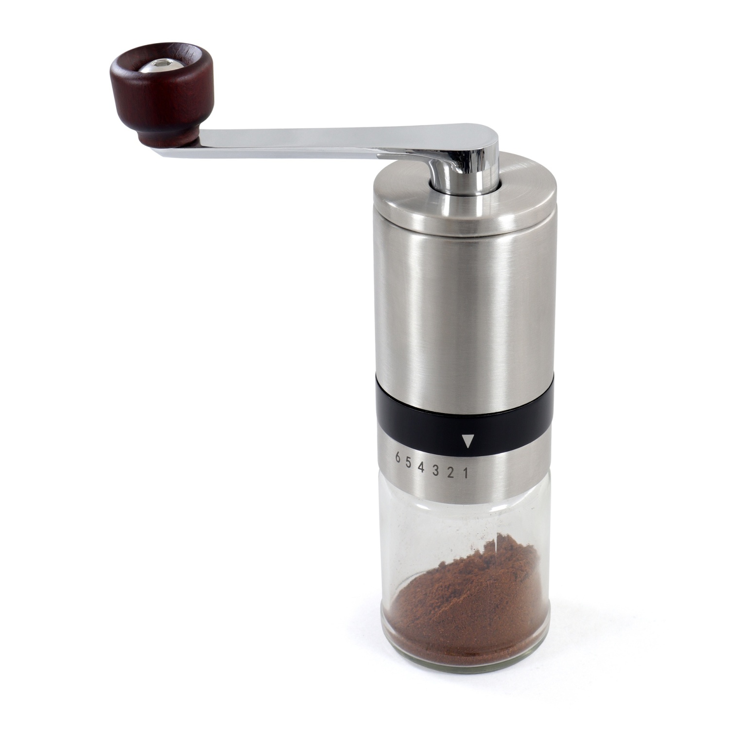 Robusts un kompakts kafijas dzirnaviņas ar 6 dažādiem malšanas līmeņiem. Malšanas līmeni var regulēt no ārpuses. Kafijas pupiņas var samalt ļoti smalki espresso vai rupjākai franču preses vai filtra kafijai. Caur caurspīdīgo stikla trauku ir iespējams redzēt, cik daudz pulvera jau ir samalts. Komponentus var viegli izjaukt un salikt atpakaļ tīrīšanai. Stikla korpuss un vāks ir mazgājami trauku mazgājamajā mašīnā. Keramikas dzirnaviņas var tīrīt ar piegādāto suku vai mitru drānu. Noņemamā roktura roka ļauj dzirnaviņas uzglabāt vietu taupoši. Noņemamais vāks nodrošina iespēju droši transportēt pupiņas dzirnaviņās.