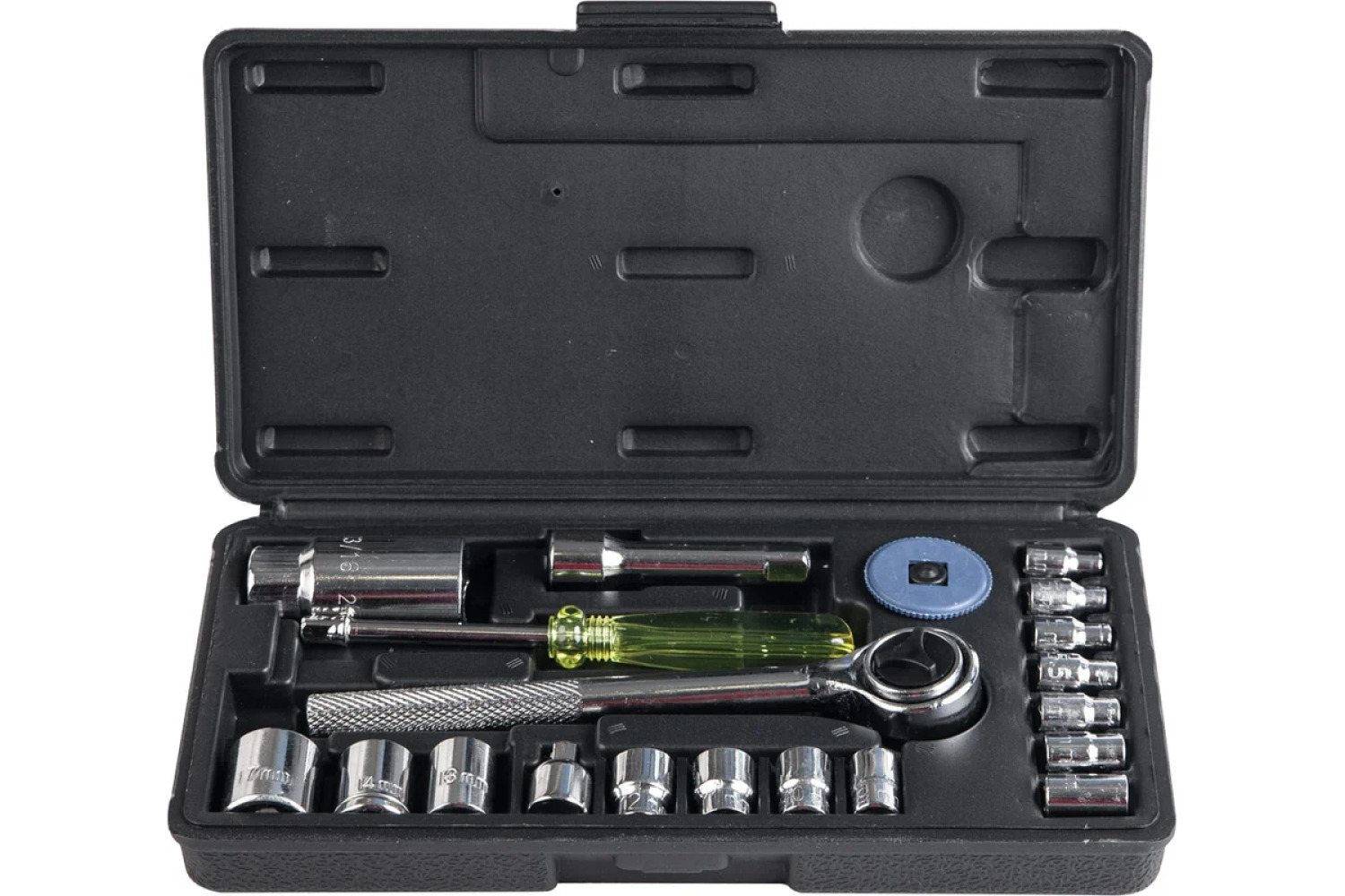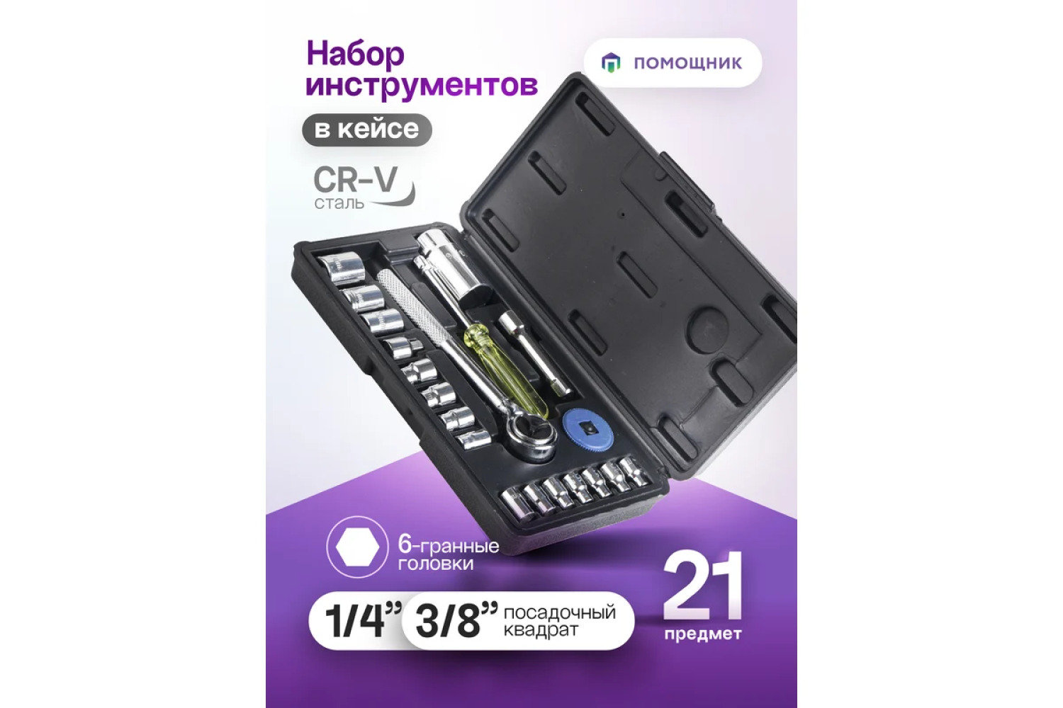 Universāls instrumentu komplekts Pomocnik ar 21 priekšmetu - ideāls risinājums mehāniķiem un montāžām.