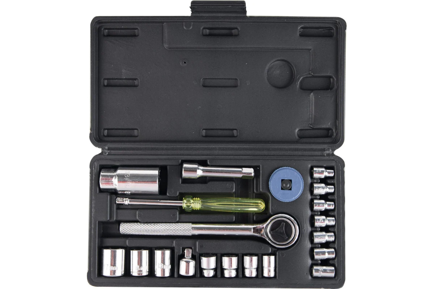 Kvalitāte. Komplektā iekļauti visi nepieciešamie instrumenti, kas izgatavoti no augstas kvalitātes hromovanādija tērauda ar hromētu pārklājumu, nodrošinot ilgmūžību un uzticamību.