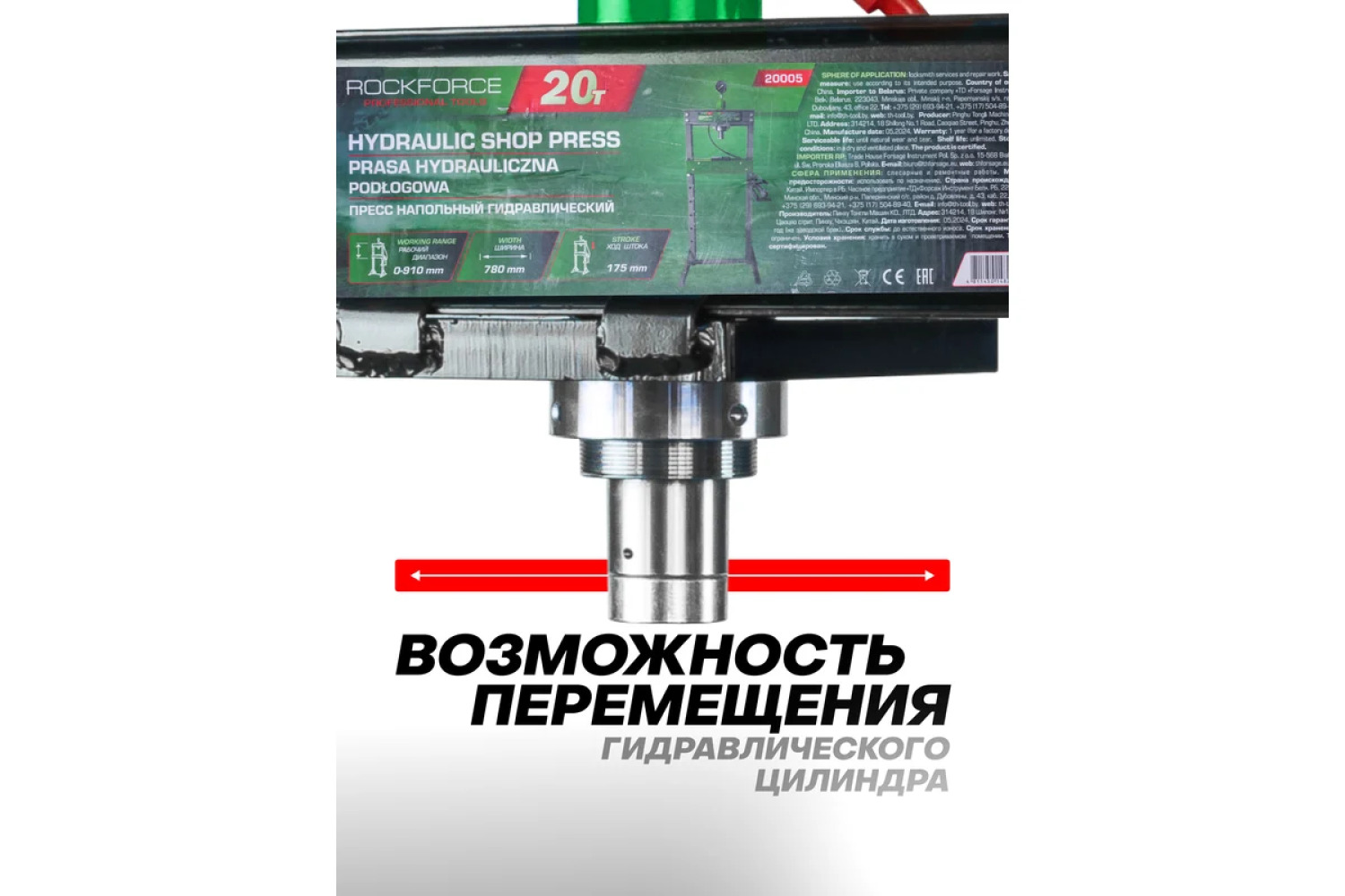 Hidrauliskā grīdas prese no zīmola ROCKFORCE ar modeli RF-20005 ir jaudīgs un uzticams aprīkojums, kas paredzēts dažādu darbu veikšanai. To var izmantot saspiešanai, locīšanai, presēšanai un citām hidrauliskām operācijām.