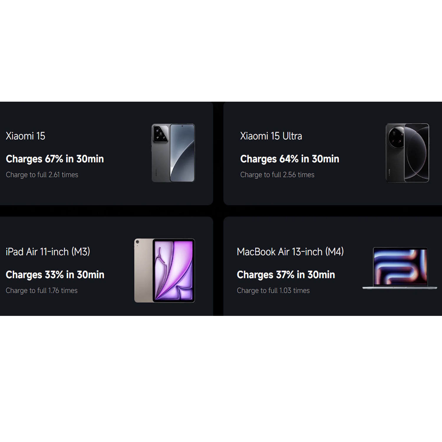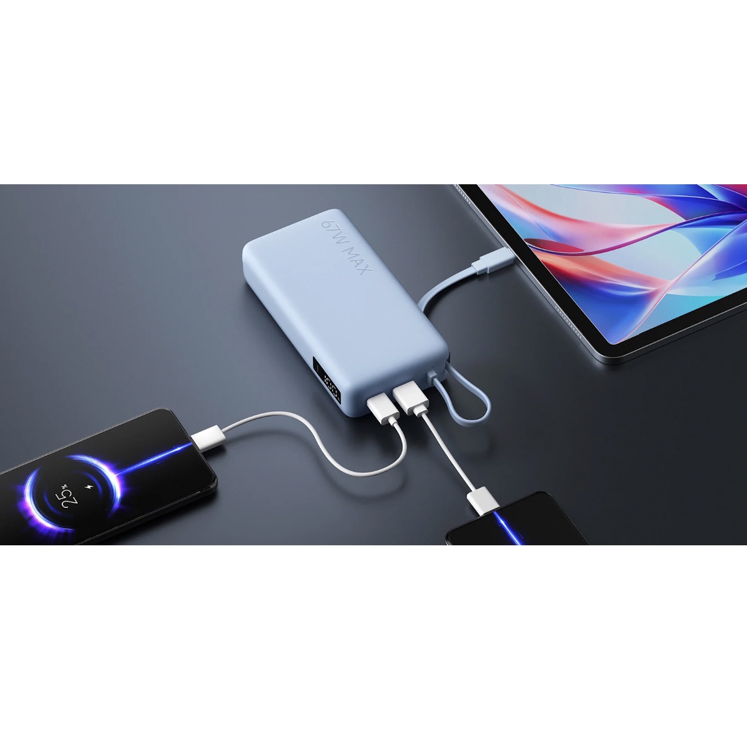 67 W ātrā uzlāde → ātra un efektīva jaudas atjaunošana, derīga arī planšetēm un klēpjdatoriem.