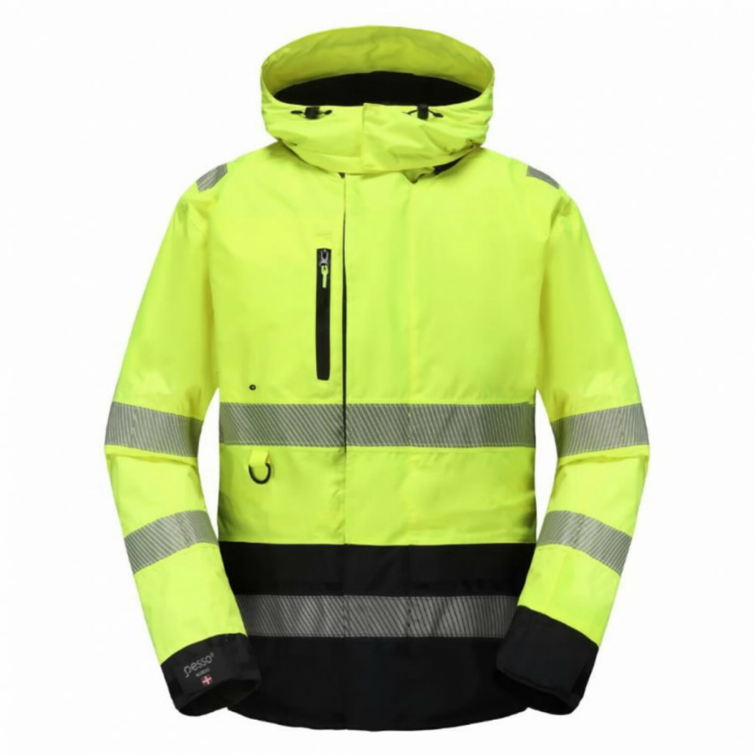 Vēja un ūdens necaurlaidīga un gaisa caurlaidīga, augstas redzamības jaka. Mūsdienīgs, ērts modelis, neierobežo kustību brīvību. Dubultas šuves - īpašai izturībai. Ārējais jakas materiāls ir izturīgs un ūdeni atgrūdošs PE audums. Silta odere. Divvirzienu rāvējslēdzējs, kas nodrošina īpašu komfortu, vadot transportlīdzekli. Ar spiedpogām nostiprināms pārloks. Noņemama plata un silta kapuce, regulējama ar aukliņu. Apkakle - paaugstināta, ar spiedpogām. Ar spiedpogām regulējamas aproces. Kokvilnas trikotāžas iekšējā aproce. Funkcionālas kabatas ar rāvējslēdzēja aizdari. Divas galvenās funkcionālās kabatas jakas sānos. Viena ārējā krūšu kabata. Iekšējā krūšu kabata. Atstarojoši elementi: 5 cm atstarojošas lentes. Pretestība pret mitruma iekļūšanu: 8000mm Mitruma iztvaikošana no iekšpuses: g/m²/24h Ārējais slānis: 100% poliesteris Odere: 100% poliesteris EN ISO 20741 EN 343 EN 342 CE
