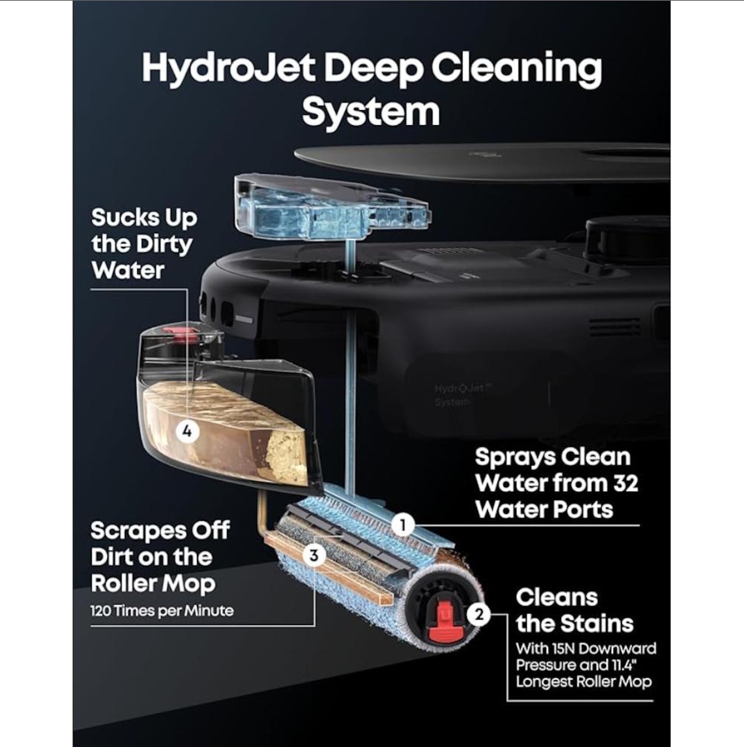 20 000 Pa jauda nodrošina būtisku pārsvaru salīdzinājumā ar standarta robotiem, ļaujot efektīvi savākt dziļi iesēdušos netīrumus paklājos un grīdas spraugās. 3L putekļu kapacitāte nozīmē mazāku apkopju biežumu, savukārt automātiskā mopju mazgāšana un žāvēšana nodrošina nemainīgi augstu higiēnas līmeni.