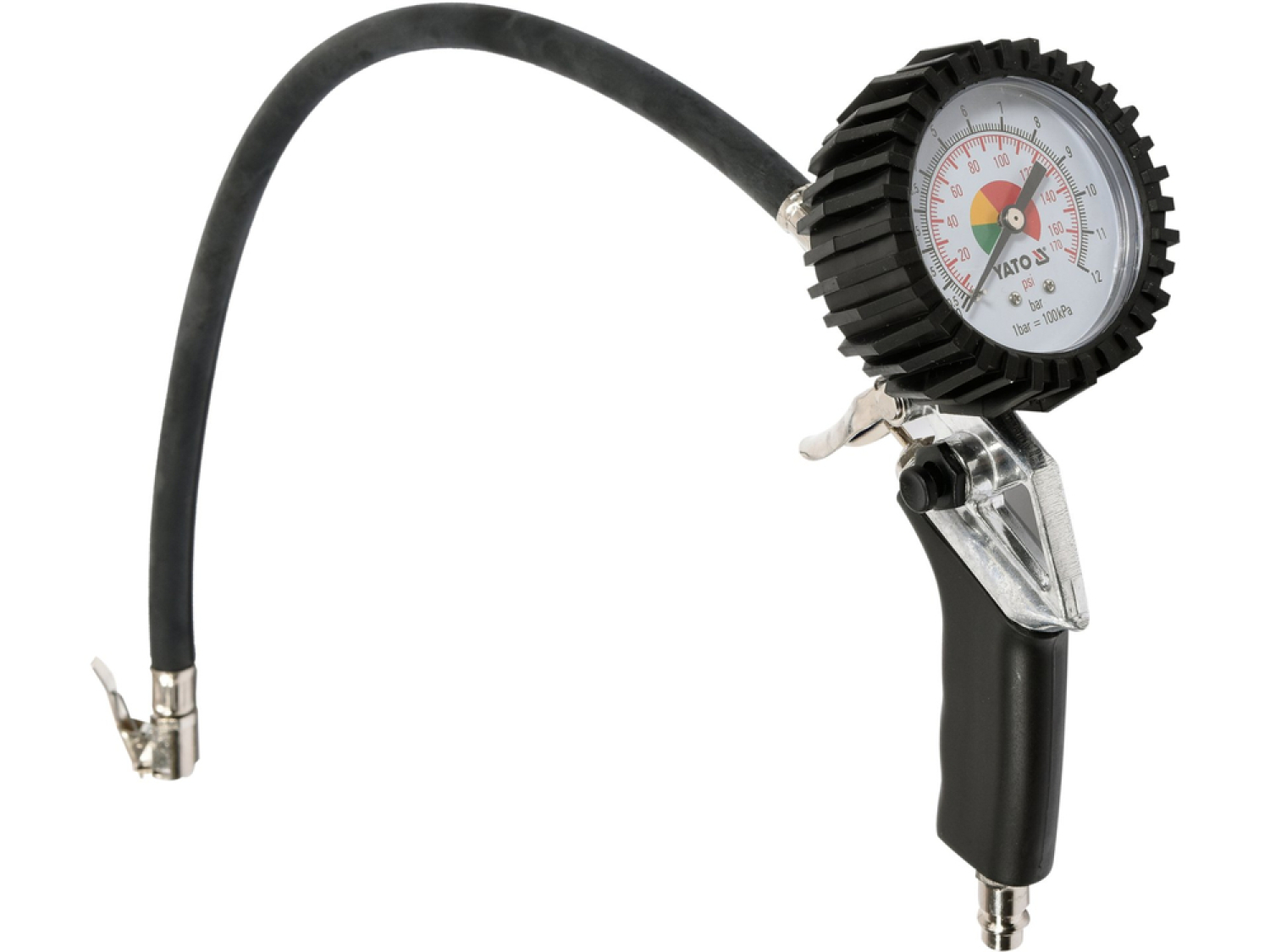 Pumpēšanas pistole ar manometru YT-2370 no zīmola YATO ir profesionāls rīks, kas nodrošina precīzu spiediena kontroli pumpēšanas procesā.