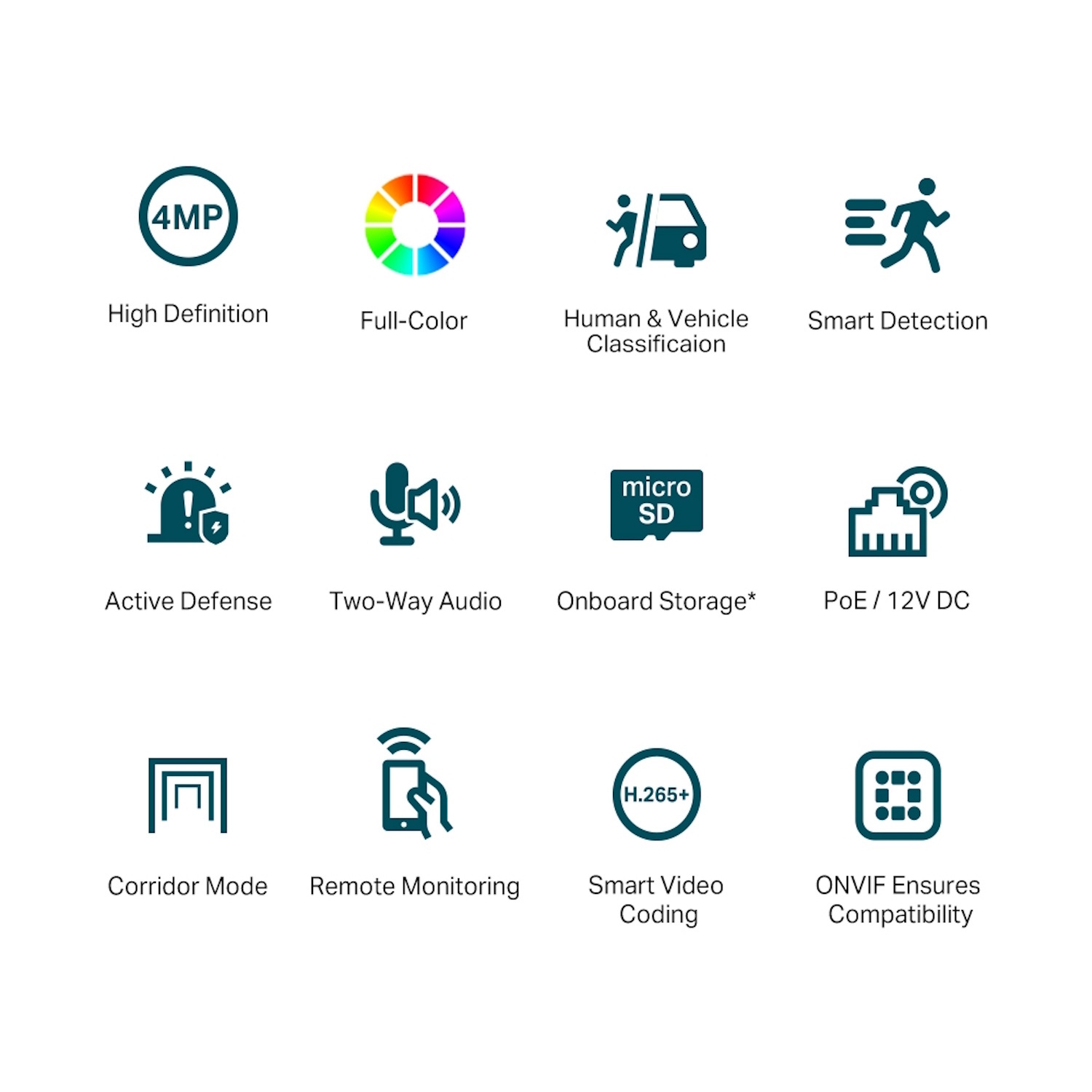 TP-Link VIGI C440 nodrošina 4 MP Full-Color 24/7 video ar skaidru, krāsainu attēlu un inteliģentu notikumu detektēšanu, kā arī divvirzienu audio un plašu savietojamību ar drošības sistēmām. H.265+ kompresija un IP67 aizsardzība padara šo kameru par prātīgu, efektīvu risinājumu āra drošības uzraudzībai, kur nepieciešams gan attēla kvalitāte, gan uzticamība.
