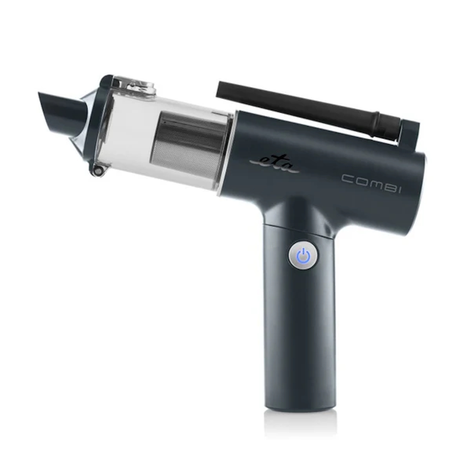 ETA 042690000 Combi ir bezvadu rokas putekļu sūcējs, kas paredzēts ātrai, ikdienas uzkopšanai mājās, automašīnā vai citās vietās bez vada. Ar **110 W motoru, Li-Ion akumulatoru un līdz 20 min darba laiku, tas nodrošina efektīvu putekļu un netīrumu sūkšanu mazām virsmām un stūriem.