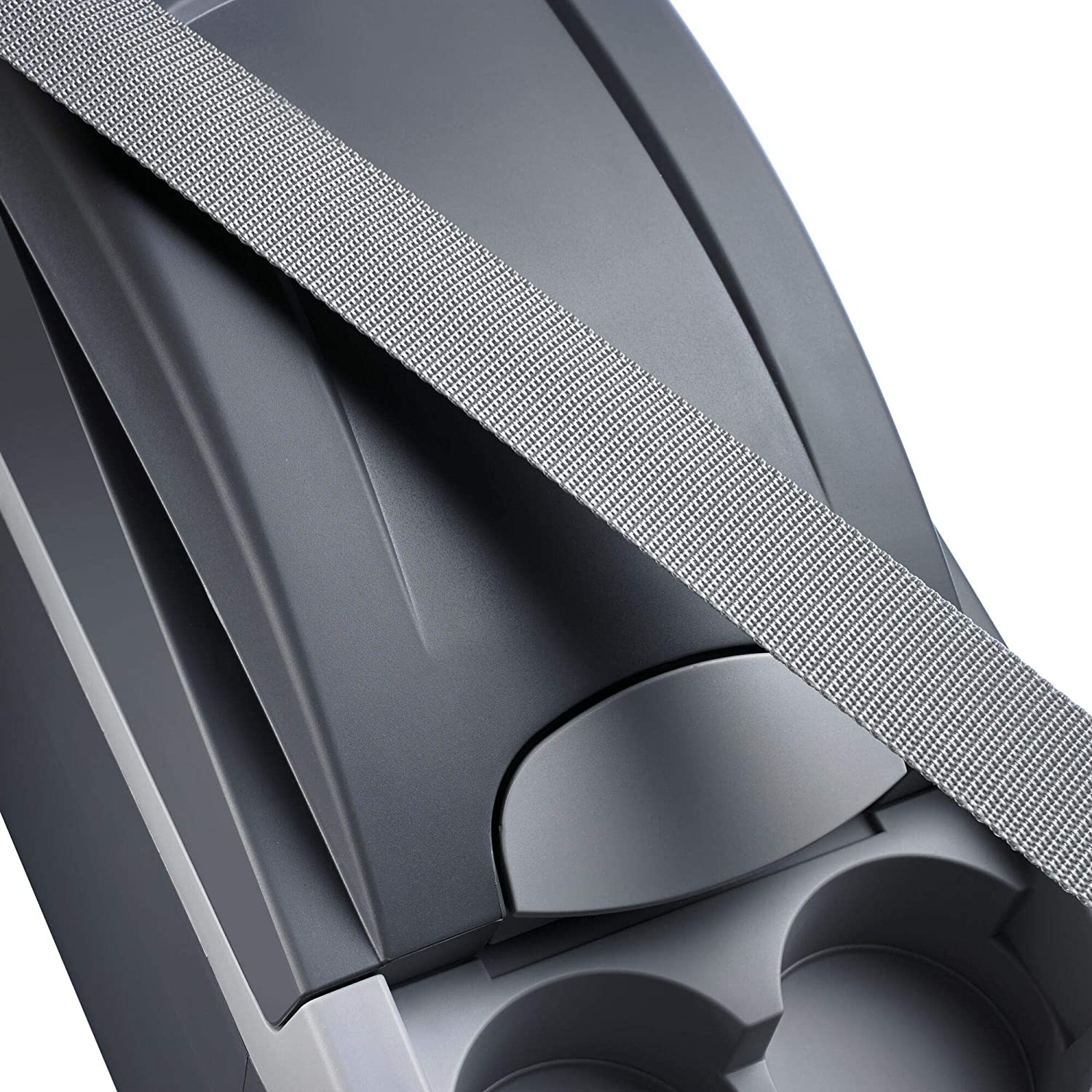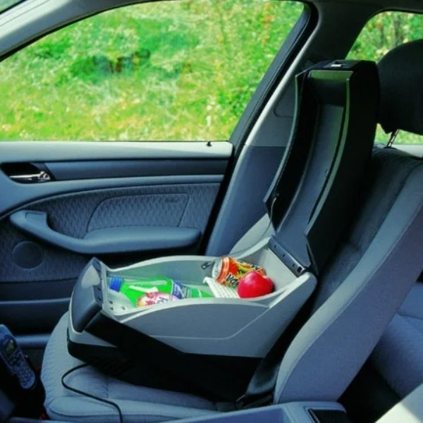 Šis elegantais pārnēsājamais dzesētājs lieliski iekļaujas vairuma transportlīdzekļu interjerā, un to var viegli nostiprināt ar drošības jostu priekšējā pasažiera sēdeklī vai aizmugurējā sēdekļa vidū.