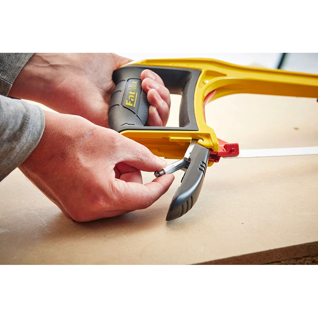 Asmeni var piestiprināt pie metāla zāģa rāmja.