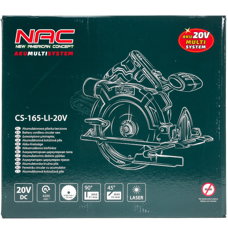 Ketassaag 20V 165mm; CS-165-LI-20V NAC