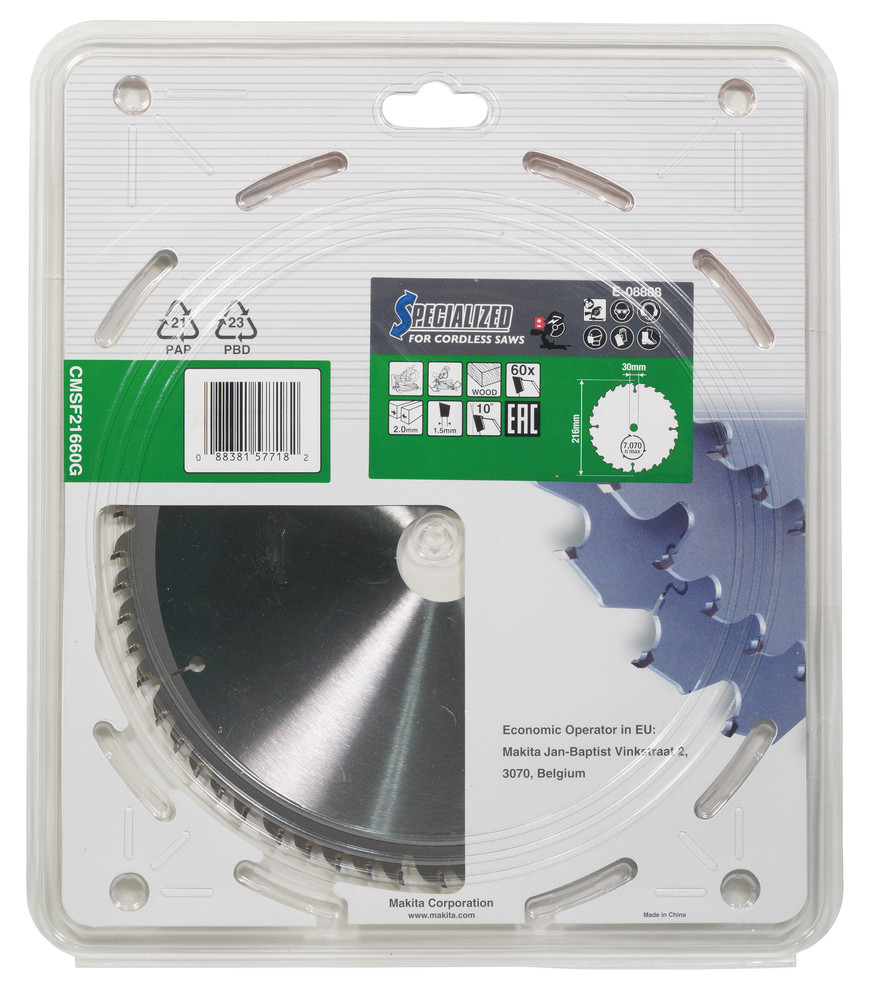 T.C.T. Zāģripa 216X30X2,0mm 10° T-60, E-08888 MAKITA
