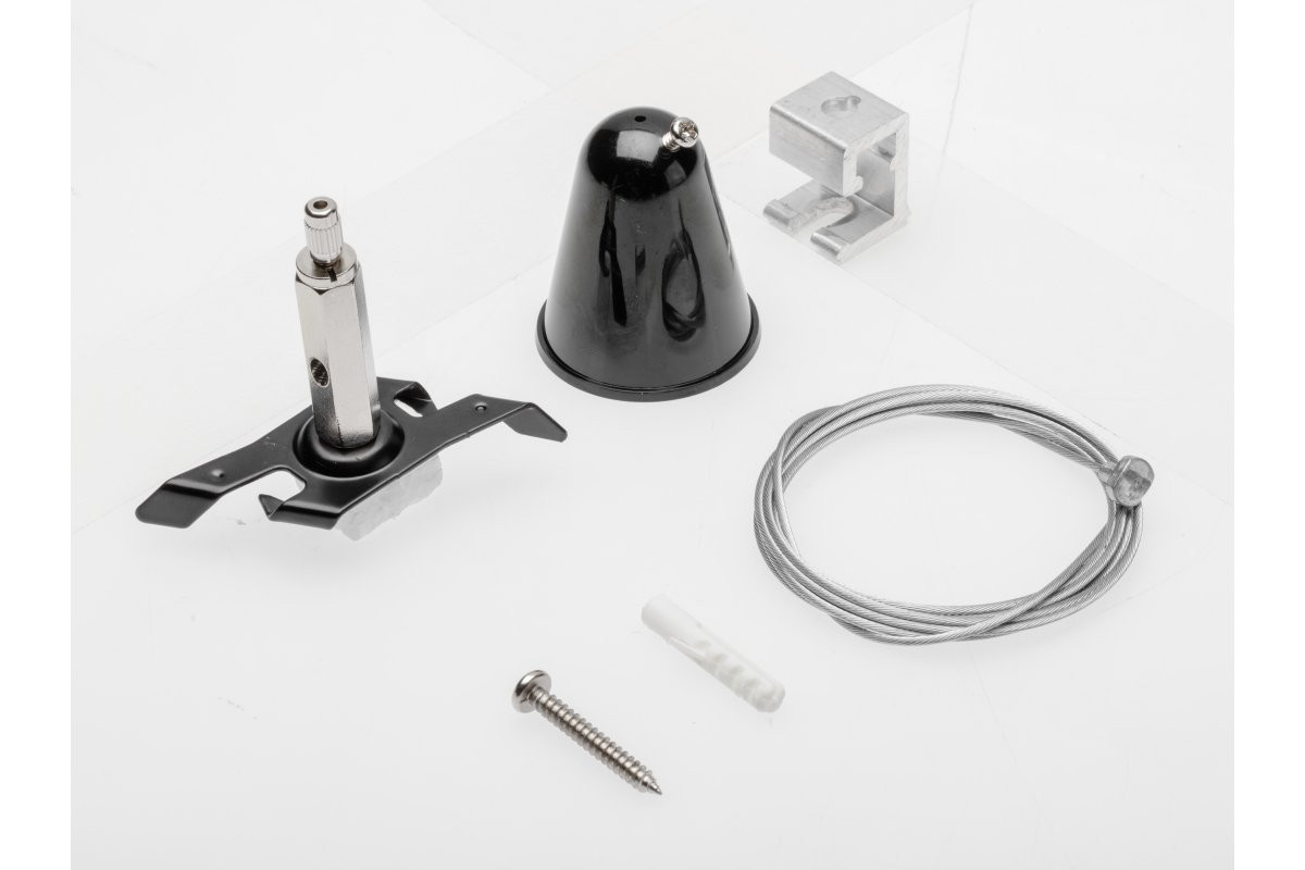 Vedrustuskomplekt X-RAIL kolmefaasilise siini jaoks, 1,5 m traat, Easy Click kinnitus, mikropositsioneerija, must