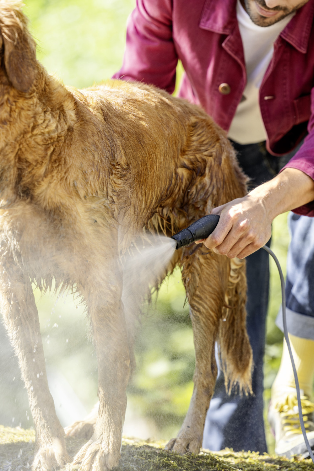 KARCHER 2.643-875.0 kooniline pihustusotsik on ideaalne lahendus teie lemmikloomade, näiteks koerte, pesemiseks. See pihustusotsik loob pehme ja mugava dušivooliku, mis on eriti kasulik nende pesemiseks pärast jalutuskäiku, enne kui nad siseneb autot, kodus või korteris. Pihustusotsiku madala rõhu tõttu on seda täiesti ohutu kasutada loomade pesemiseks.