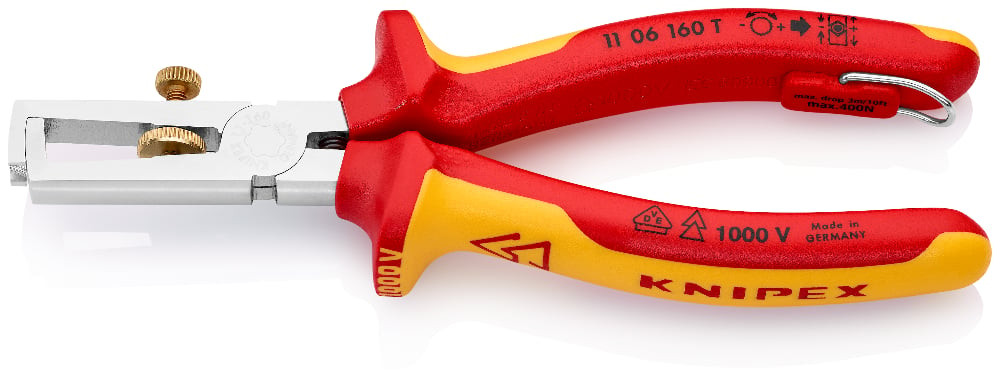 Izolācijas noņēmējs, KNIPEX, 11 06 160 T, līdz Ø 5 mm, VDE sertificēts, hromēts