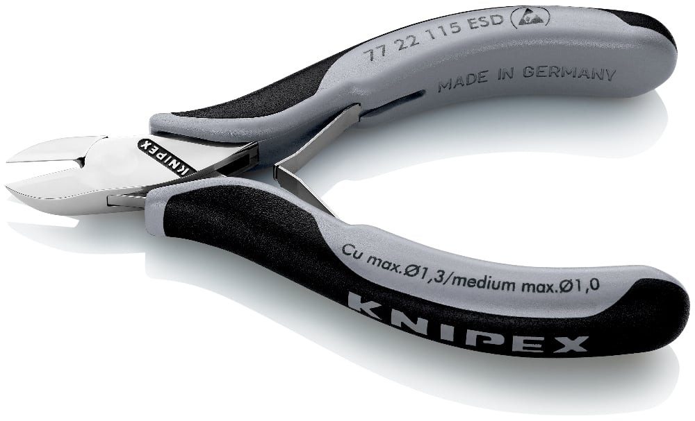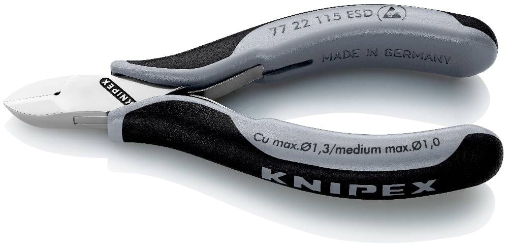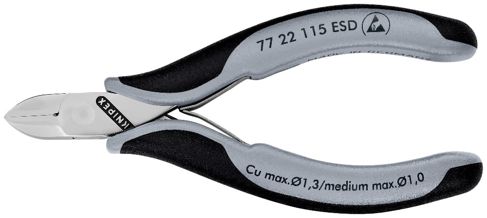 Elektronikas diagonālie griezēji, KNIPEX, 77 22 115 ESD, ESD aizsardzība, cietība 62 HRC, ergonomiski rokturi