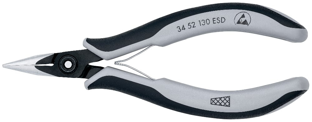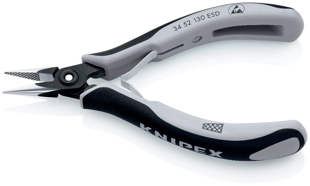 Precīzijas ESD uzgriežņu knaibles, KNIPEX, 34 52 130 ESD, 130 mm, ergonomiskas, zema svars, bez atspīduma