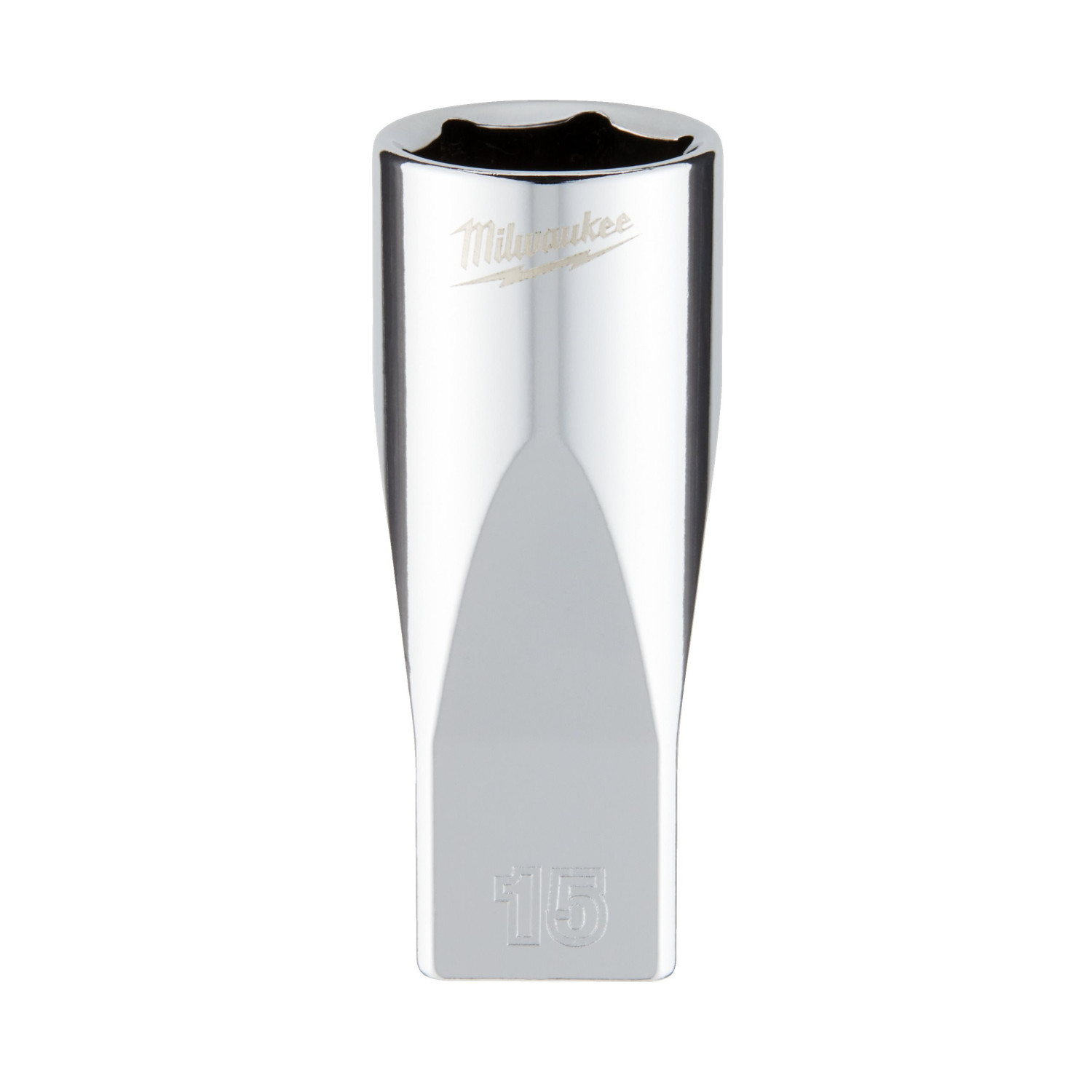 ¼″HROMĒTI UZGRIEŽŅU SKRŪVĒŠANAS UZGAĻI AR ČETRIEM PLAKANIEM™ SĀNIEM, 1/4 DRIVE SOCKET - METRIC DEEP - 15 MM, 4932478335 MILWAUKEE