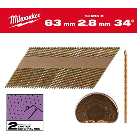 IETVARA NAGLAS, 20°, D VEIDA, 34° D-HEAD 63 X 2.8 MM / RS / G / SC2 - 2.200 PC, 4932492607 MILWAUKEE